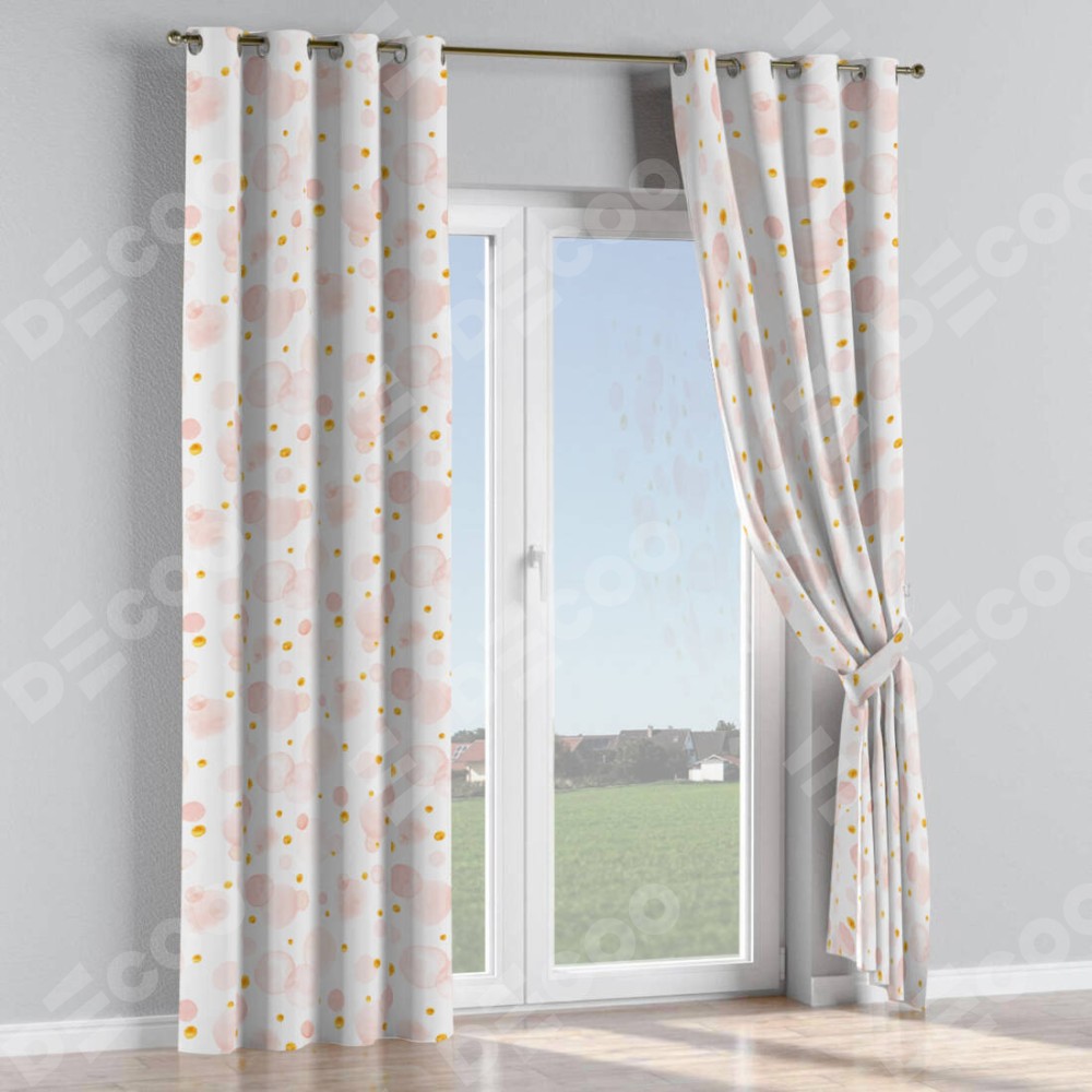 Комплект прямых штор, от производителя «Cortin», пошиты из ткани блэкаут с нанесением сублимационной печати «Круги и точки». Данная модель пошита на люверсах, комплектуется на выбор круглым карнизом и подходит для монтажа на стену или потолок. Прямые шторы на люверсах шьются по стандарту с коэффициентом 1/2 (на 100 см. ширины проёма 200 см. ширины ткани), отличительным преимуществом данной модели является простой способ монтажа. Достаточно повесить ее на трубу и штора готова!