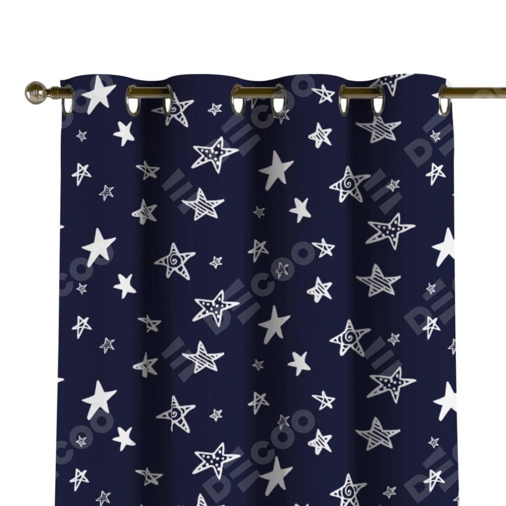 Комплект прямых штор, от производителя «Cortin», пошиты из ткани блэкаут с нанесением сублимационной печати «Ночные звёзды». Данная модель пошита на люверсах, комплектуется на выбор круглым карнизом и подходит для монтажа на стену или потолок. Прямые шторы на люверсах шьются по стандарту с коэффициентом 1/2 (на 100 см. ширины проёма 200 см. ширины ткани), отличительным преимуществом данной модели является простой способ монтажа. Достаточно повесить ее на трубу и штора готова!