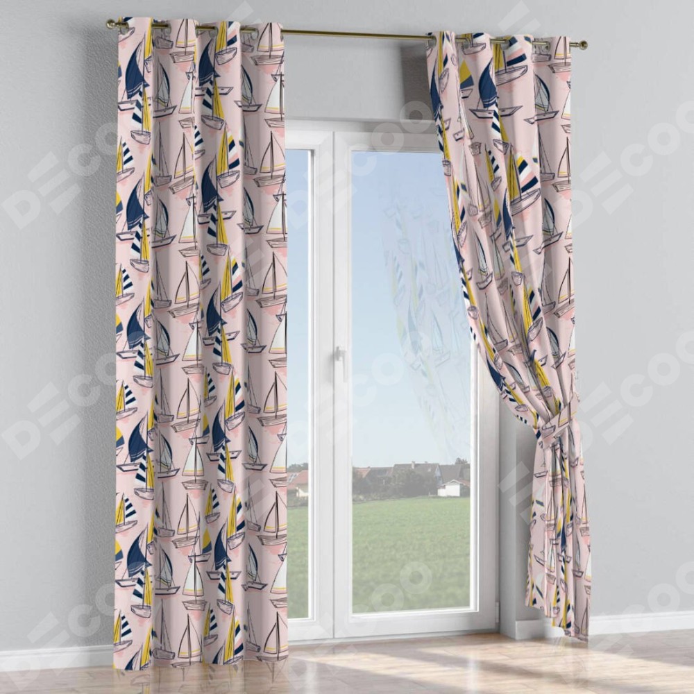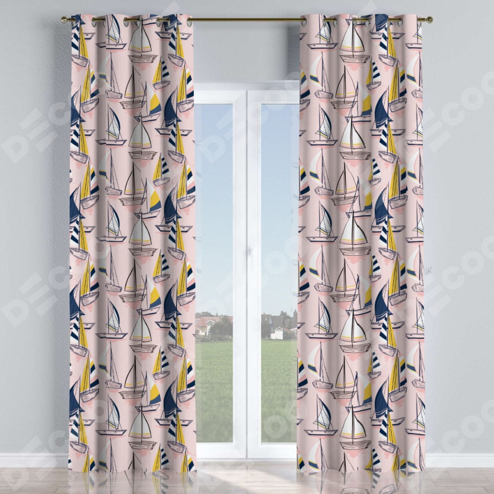 Комплект прямых штор, от производителя «Cortin», пошиты из ткани блэкаут с нанесением сублимационной печати «Парусная регата». Данная модель пошита на люверсах, комплектуется на выбор круглым карнизом и подходит для монтажа на стену или потолок. Прямые шторы на люверсах шьются по стандарту с коэффициентом 1/2 (на 100 см. ширины проёма 200 см. ширины ткани), отличительным преимуществом данной модели является простой способ монтажа. Достаточно повесить ее на трубу и штора готова!