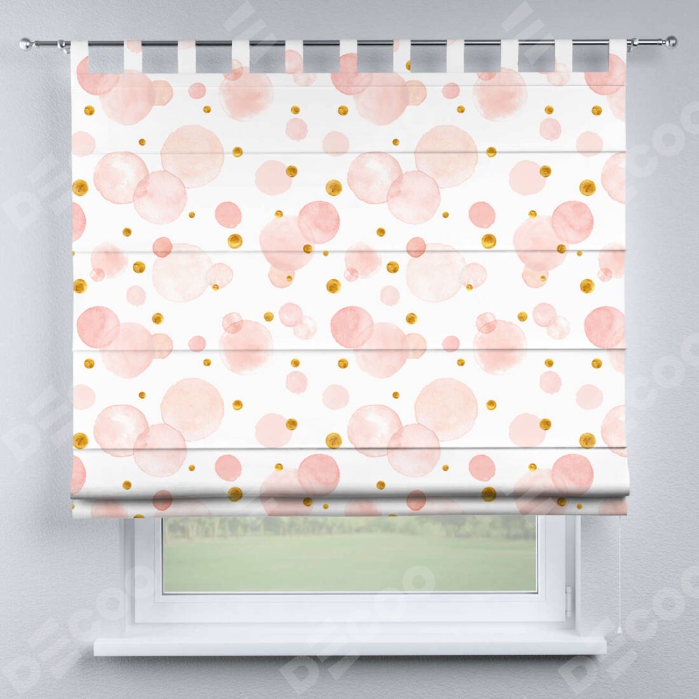 Римская штора производителя «Cortin», используется для проёма, пошита из ткани блэкаут с нанесением сублимационной печати «Круги и точки». Данная модель пошита на петлях, комплектуется на выбор круглым карнизом и подходит для монтажа на стену. Римская штора на петлях имеет простую систему регулировки высоты, отличительным преимуществом данной модели является простой способ монтажа. Достаточно повесить ее на трубу и штора готова!