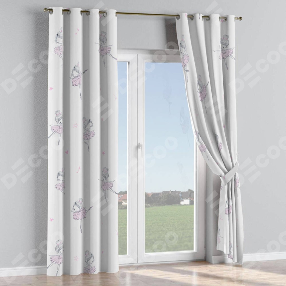 Комплект прямых штор, от производителя «Cortin», пошиты из ткани блэкаут с нанесением сублимационной печати «Маленькая балерина». Данная модель пошита на люверсах, комплектуется на выбор круглым карнизом и подходит для монтажа на стену или потолок. Прямые шторы на люверсах шьются по стандарту с коэффициентом 1/2 (на 100 см. ширины проёма 200 см. ширины ткани), отличительным преимуществом данной модели является простой способ монтажа. Достаточно повесить ее на трубу и штора готова!