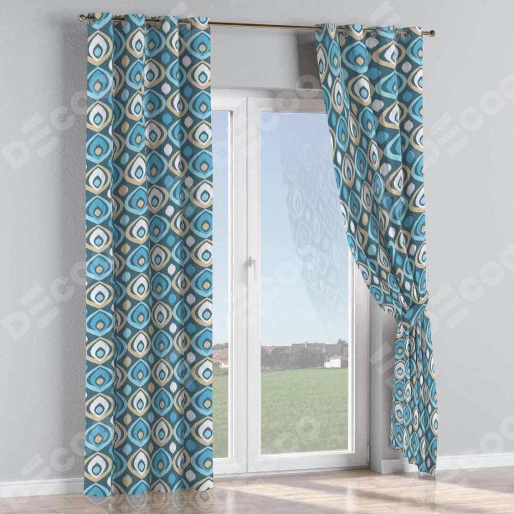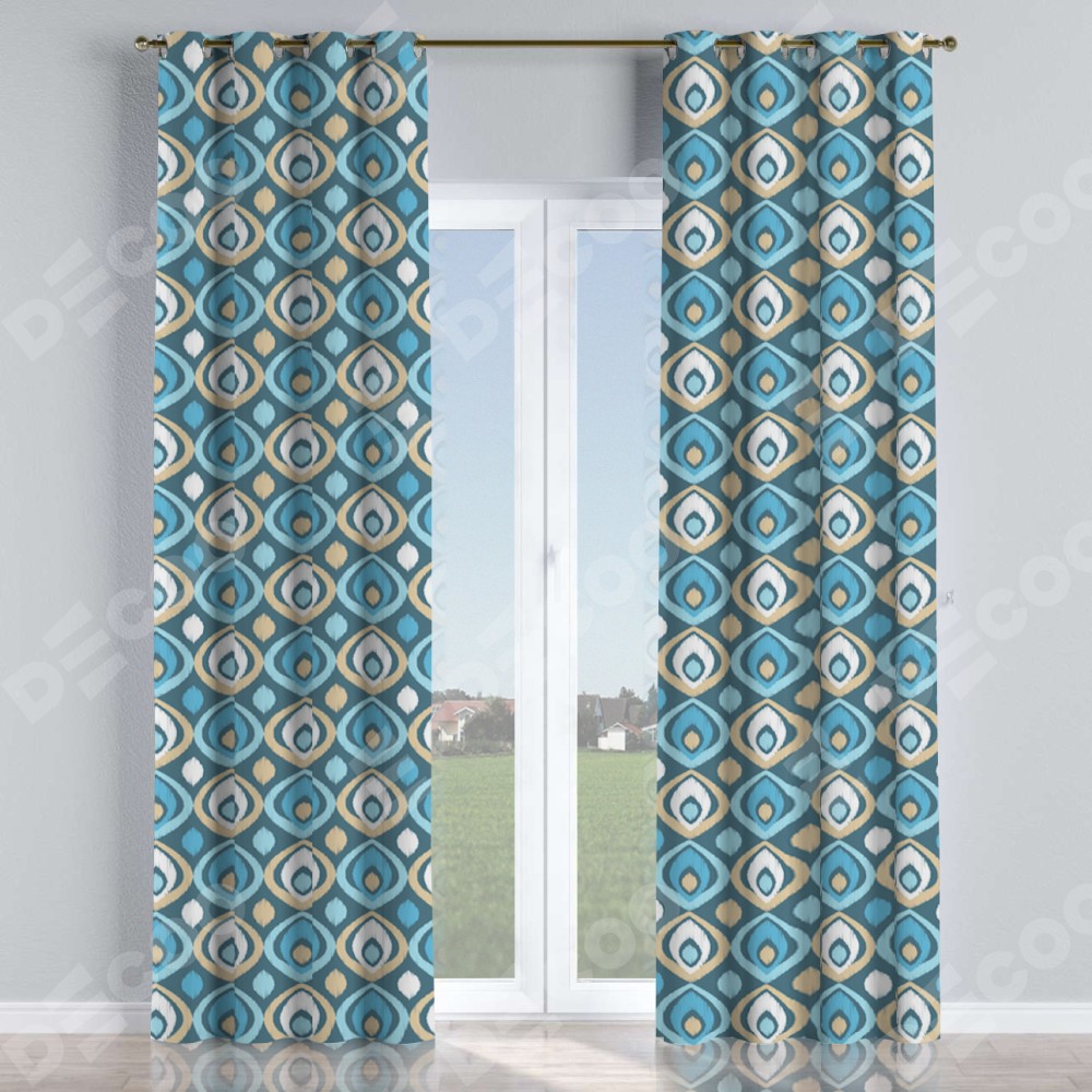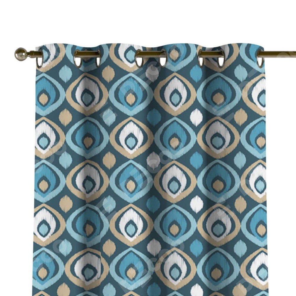 Комплект прямых штор, от производителя «Cortin», пошиты из ткани блэкаут с нанесением сублимационной печати «Икат орнамент». Данная модель пошита на люверсах, комплектуется на выбор круглым карнизом и подходит для монтажа на стену или потолок. Прямые шторы на люверсах шьются по стандарту с коэффициентом 1/2 (на 100 см. ширины проёма 200 см. ширины ткани), отличительным преимуществом данной модели является простой способ монтажа. Достаточно повесить ее на трубу и штора готова!