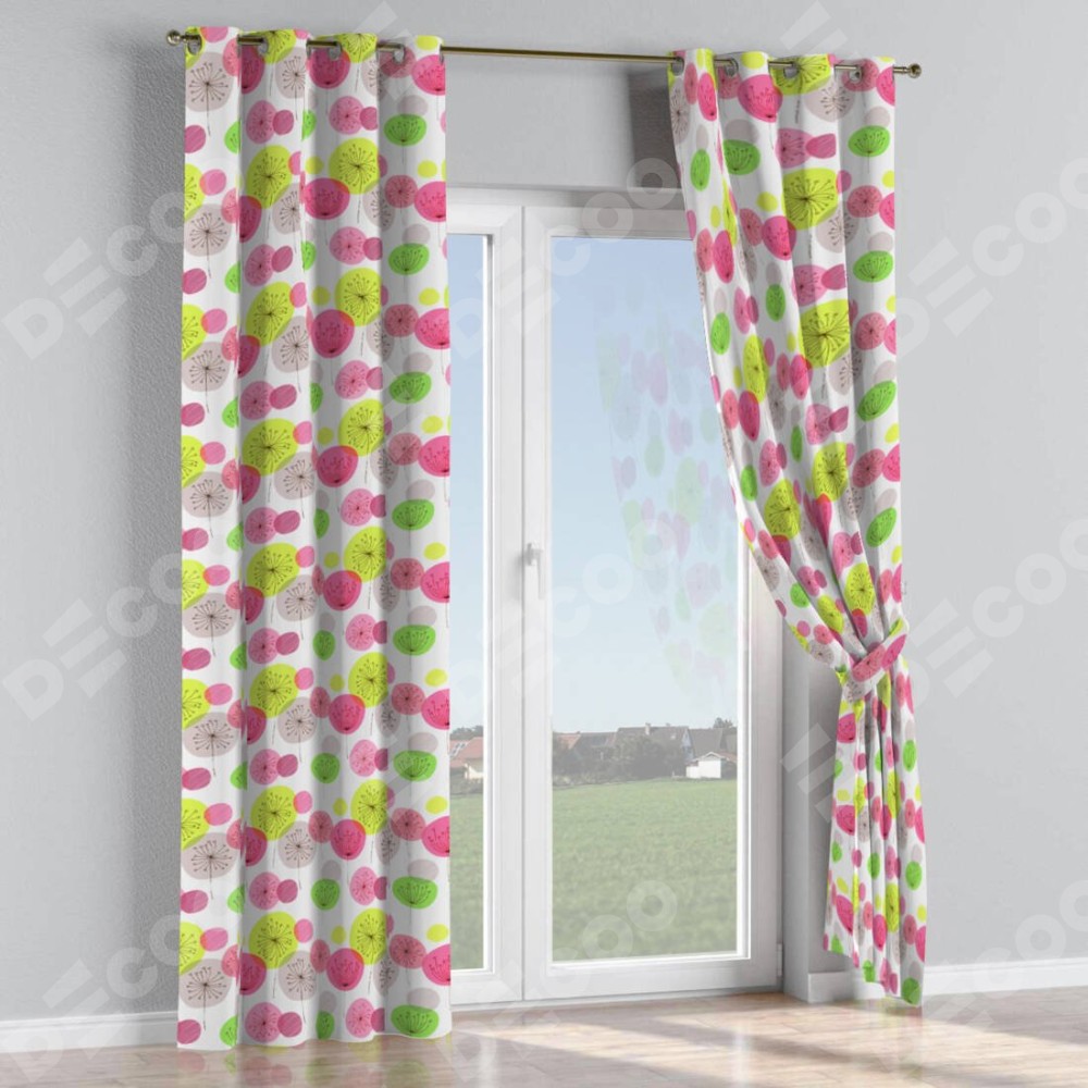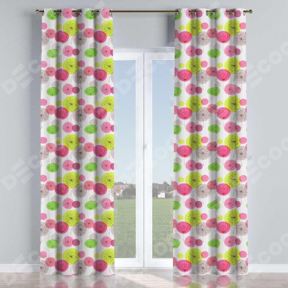 Комплект прямых штор, от производителя «Cortin», пошиты из ткани блэкаут с нанесением сублимационной печати «Цветные одуванчики». Данная модель пошита на люверсах, комплектуется на выбор круглым карнизом и подходит для монтажа на стену или потолок. Прямые шторы на люверсах шьются по стандарту с коэффициентом 1/2 (на 100 см. ширины проёма 200 см. ширины ткани), отличительным преимуществом данной модели является простой способ монтажа. Достаточно повесить ее на трубу и штора готова!