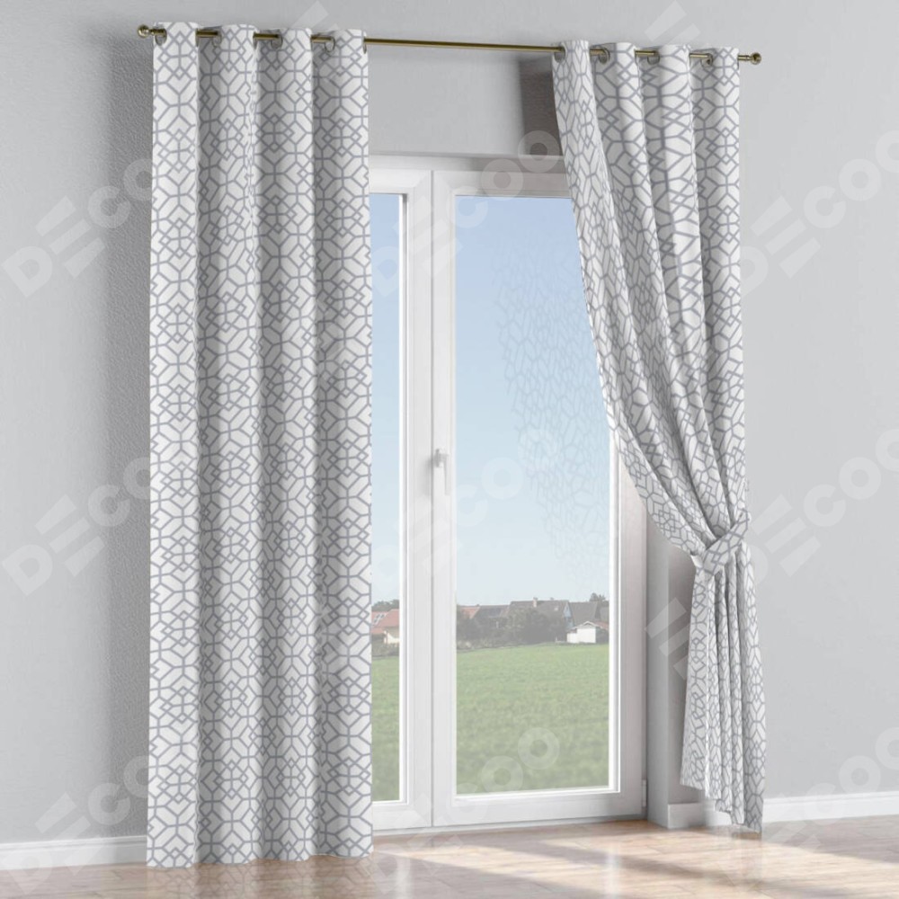 Комплект прямых штор, от производителя «Cortin», пошиты из ткани блэкаут с нанесением сублимационной печати «Архитектурный орнамент». Данная модель пошита на люверсах, комплектуется на выбор круглым карнизом и подходит для монтажа на стену или потолок. Прямые шторы на люверсах шьются по стандарту с коэффициентом 1/2 (на 100 см. ширины проёма 200 см. ширины ткани), отличительным преимуществом данной модели является простой способ монтажа. Достаточно повесить ее на трубу и штора готова!
