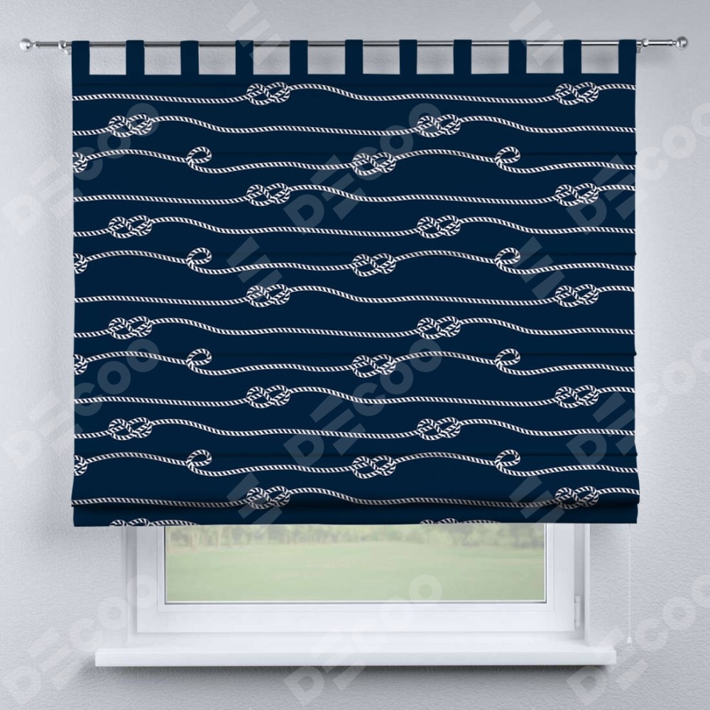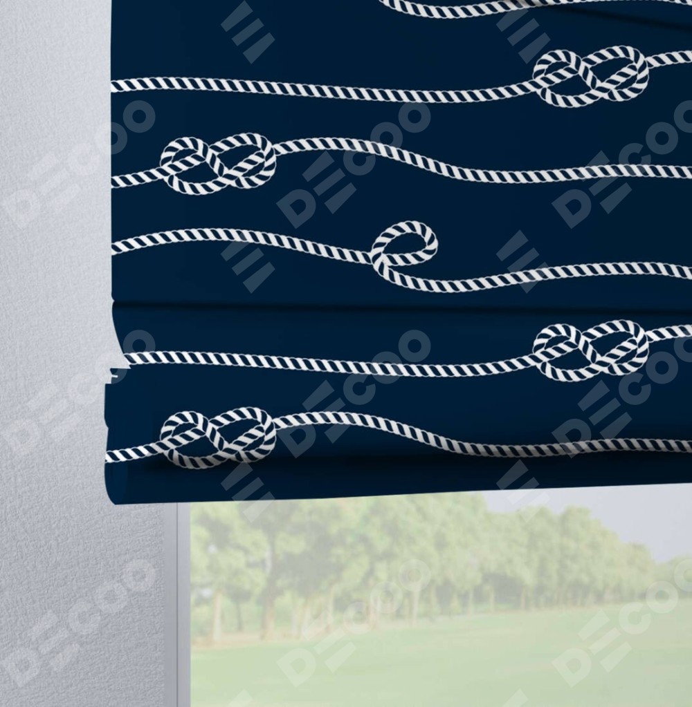 Римская штора производителя «Cortin», используется для проёма, пошита из ткани блэкаут с нанесением сублимационной печати «Морской узел». Данная модель пошита на петлях, комплектуется на выбор круглым карнизом и подходит для монтажа на стену. Римская штора на петлях имеет простую систему регулировки высоты, отличительным преимуществом данной модели является простой способ монтажа. Достаточно повесить ее на трубу и штора готова!