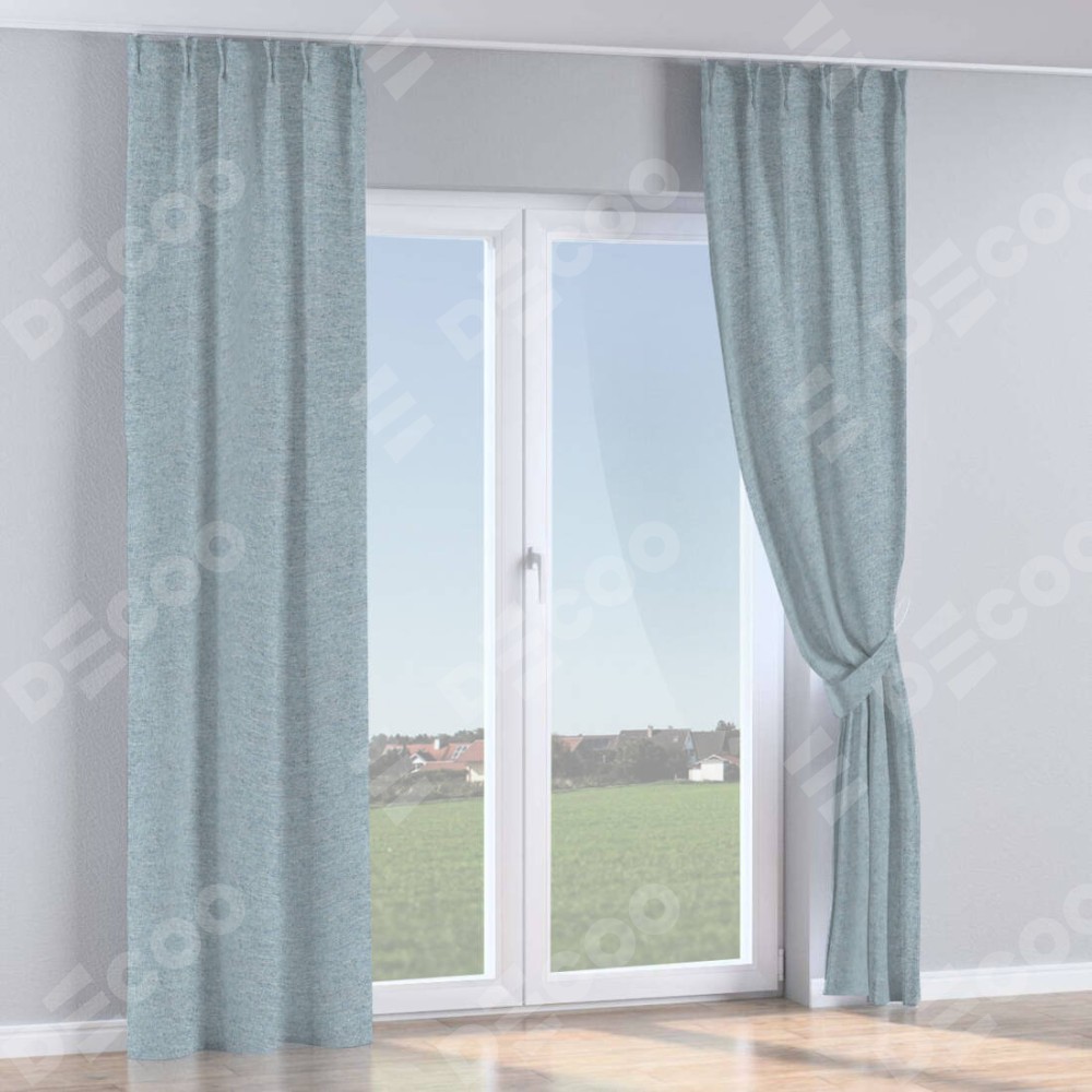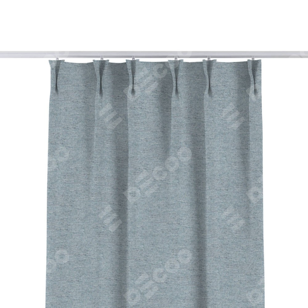 Комплект прямых штор, от производителя «Cortin», пошиты из ткани стиф димаут светло-серый, артикул ткани 44025. С изнаночной стороны в верхней части штор пристрачивается шторная лента с декоративными складками «Кустик». Для создания элегантных складок прямые шторы шьются по стандарту с коэффициентом 1:2 (на 100 см. ширины проёма 200 см. ширины ткани).