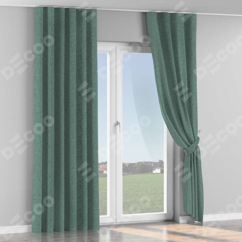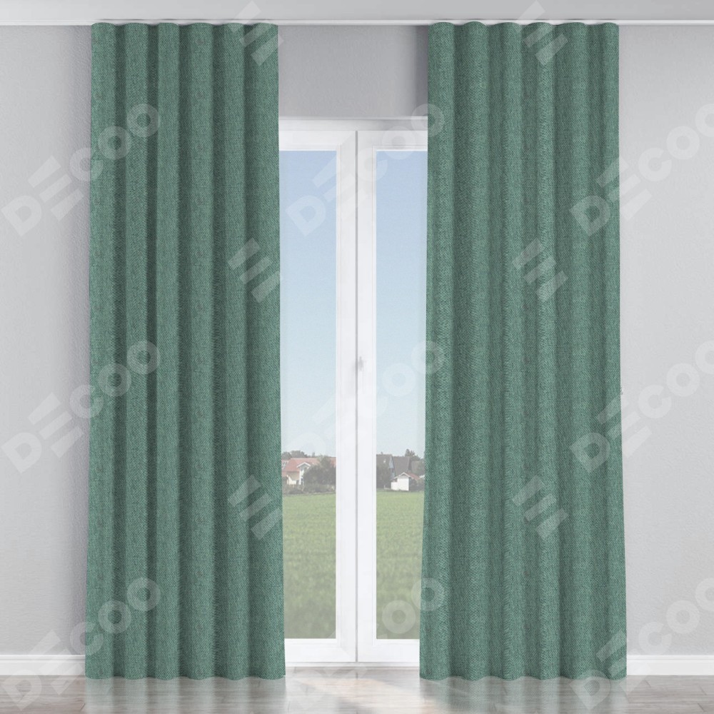 Комплект прямых штор, от производителя «Cortin», пошиты из ткани стиф димаут серо-голубой, артикул ткани 44029. С изнаночной стороны в верхней части штор пристрачивается шторная лента с декоративными складками «Волна». Для создания элегантных складок прямые шторы шьются по стандарту с коэффициентом 1:2 (на 100 см. ширины проёма 200 см. ширины ткани).