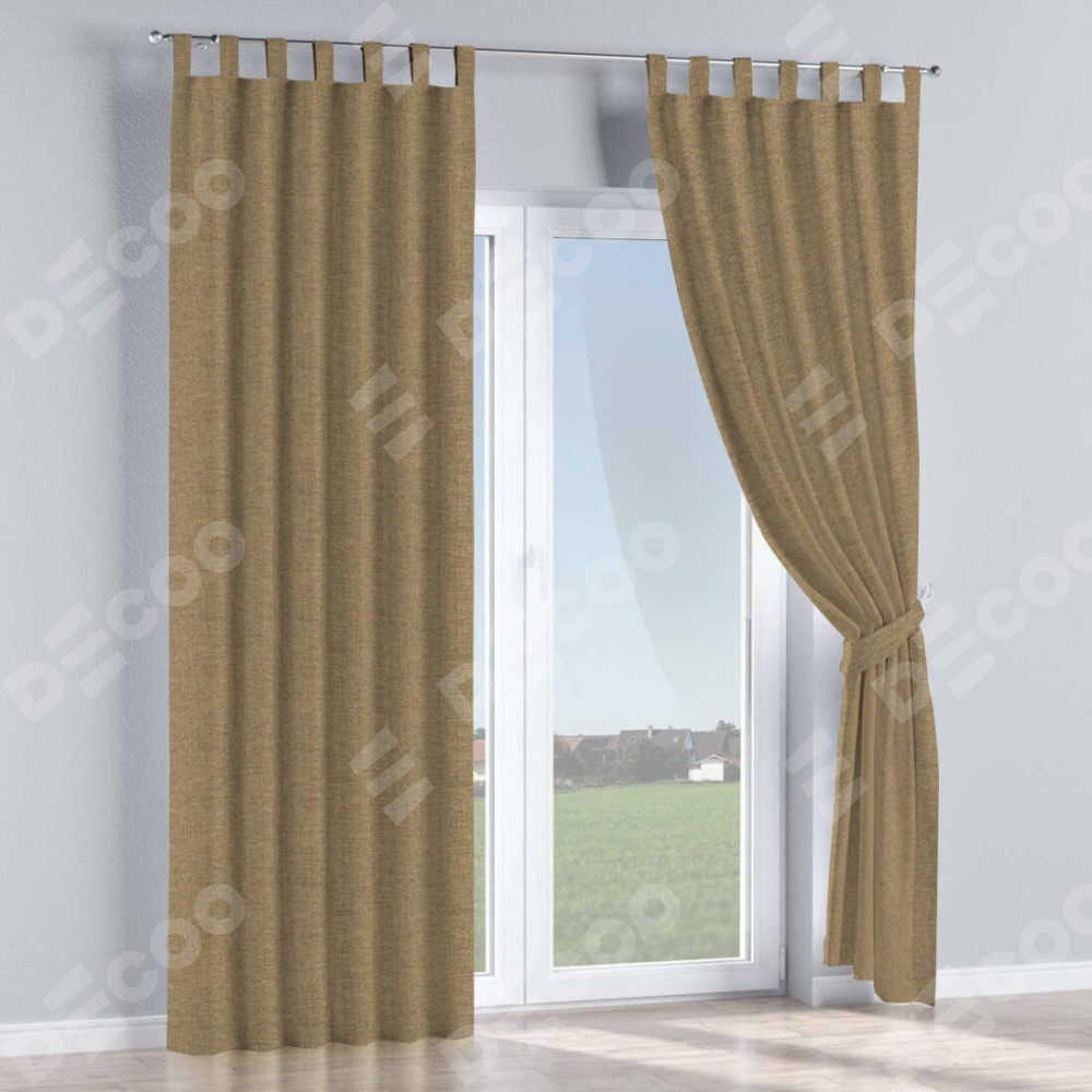 Комплект прямых штор, от производителя «Cortin», пошиты из ткани стиф димаут тёмно-бежевый, артикул ткани 18085. Данная модель пошита на петлях, комплектуется на выбор круглым карнизом и подходит для монтажа на стену или потолок. Прямые шторы на петлях шьются по стандарту с коэффициентом 1/2 (на 100 см. ширины проёма 200 см. ширины ткани), отличительным преимуществом данной модели является простой способ монтажа. Достаточно повесить ее на трубу и штора готова!