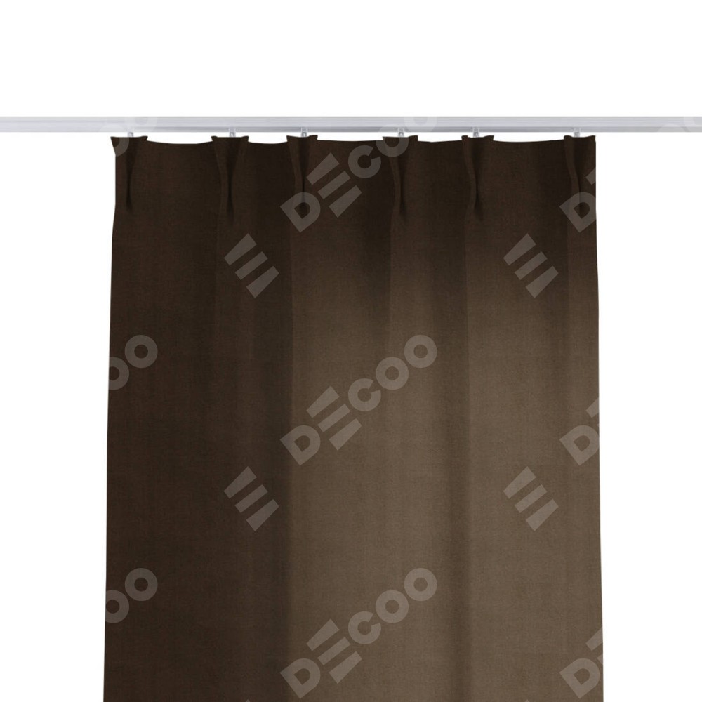 Комплект прямых штор, от производителя «Cortin», пошиты из ткани вельвет тёмно-коричневый, артикул ткани 30991. С изнаночной стороны в верхней части штор пристрачивается шторная лента с декоративными складками «Кустик». Для создания элегантных складок прямые шторы шьются по стандарту с коэффициентом 1:2 (на 100 см. ширины проёма 200 см. ширины ткани).