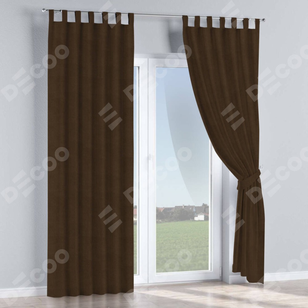 Комплект прямых штор, от производителя «Cortin», пошиты из ткани вельвет тёмно-коричневый, артикул ткани 30991. Данная модель пошита на петлях, комплектуется на выбор круглым карнизом и подходит для монтажа на стену или потолок. Прямые шторы на петлях шьются по стандарту с коэффициентом 1/2 (на 100 см. ширины проёма 200 см. ширины ткани), отличительным преимуществом данной модели является простой способ монтажа. Достаточно повесить ее на трубу и штора готова!