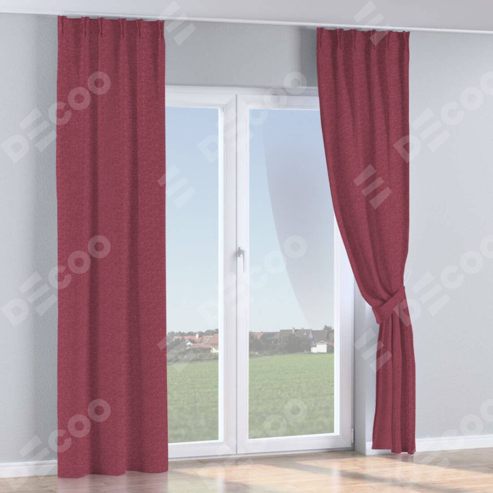 Комплект прямых штор, от производителя «Cortin», пошиты из ткани лён димаут марсала, артикул ткани 1602. С изнаночной стороны в верхней части штор пристрачивается шторная лента с декоративными складками «Кустик». Для создания элегантных складок прямые шторы шьются по стандарту с коэффициентом 1:2 (на 100 см. ширины проёма 200 см. ширины ткани).