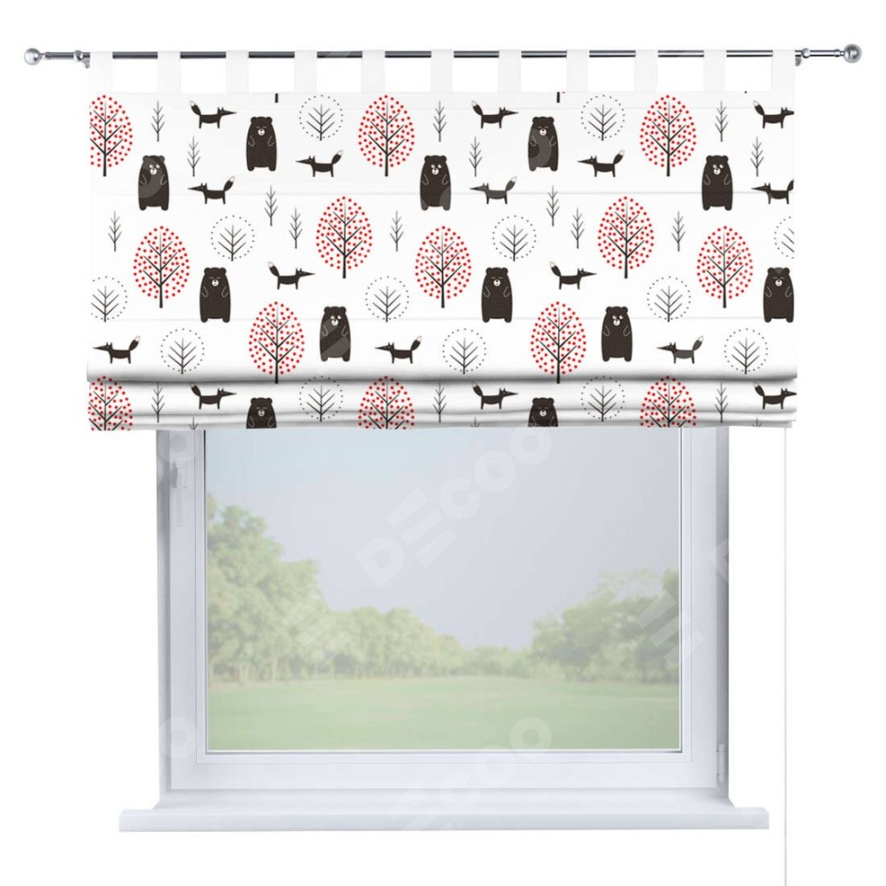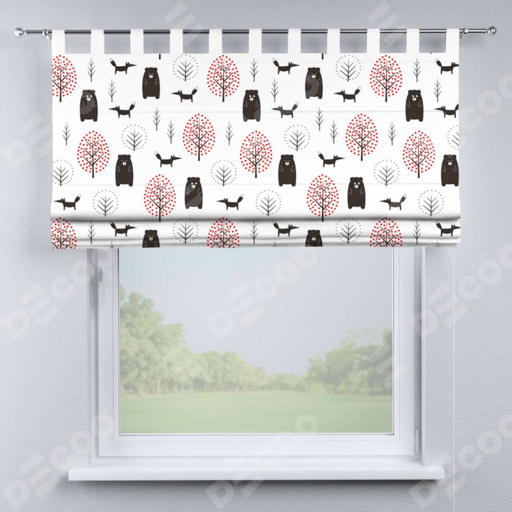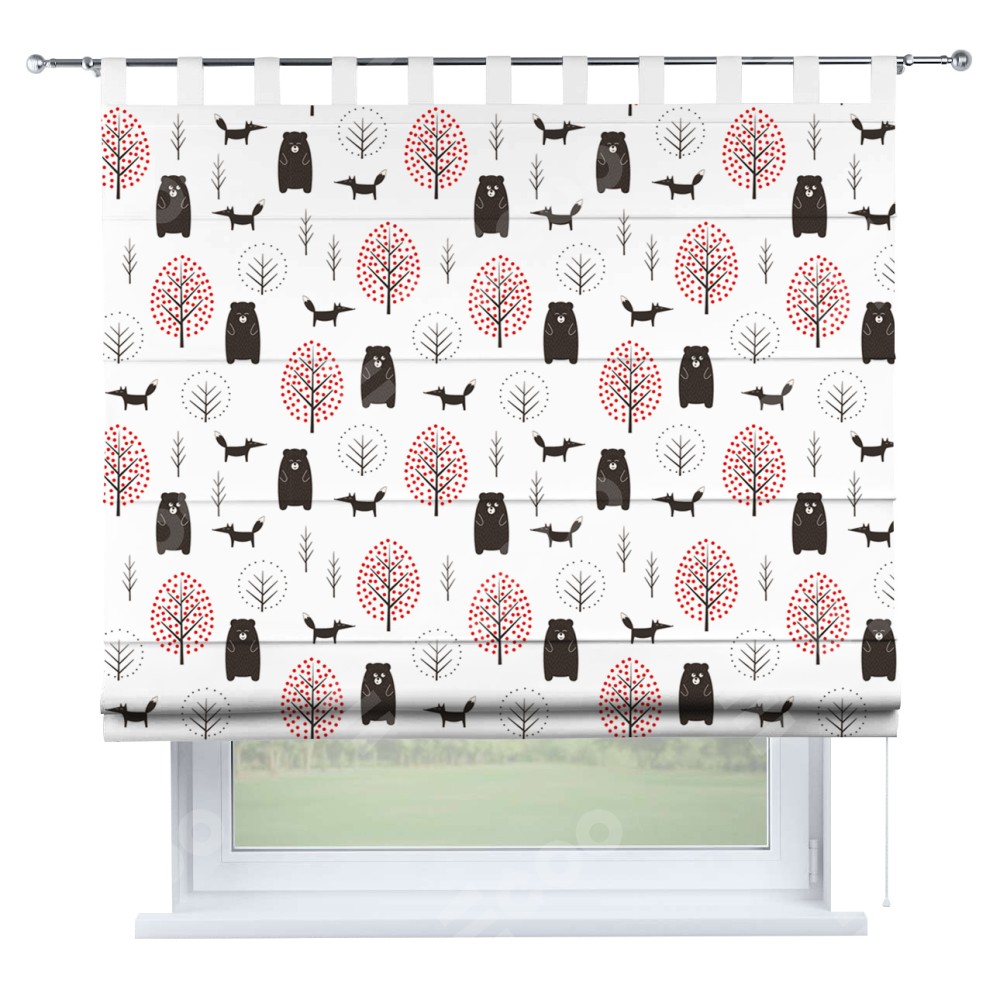 Римская штора производителя «Cortin», используется для проёма, пошита из ткани блэкаут с нанесением сублимационной печати «Сканди лес». Данная модель пошита на петлях, комплектуется на выбор круглым карнизом и подходит для монтажа на стену. Римская штора на петлях имеет простую систему регулировки высоты, отличительным преимуществом данной модели является простой способ монтажа. Достаточно повесить ее на трубу и штора готова!