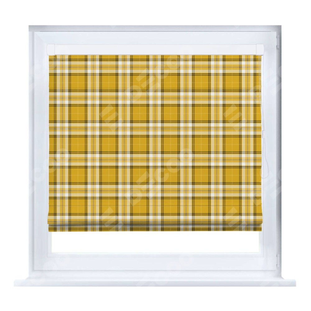 Римская штора производителя «Cortin», устанавливается на створку окна, пошита из ткани блэкаут с нанесением сублимационной печати «Желто-горчичная клетка». Штора шьётся по индивидуальным размерам, для данного типа римской шторы возможная ширина от 35 до 150 см., высота до 250 см.