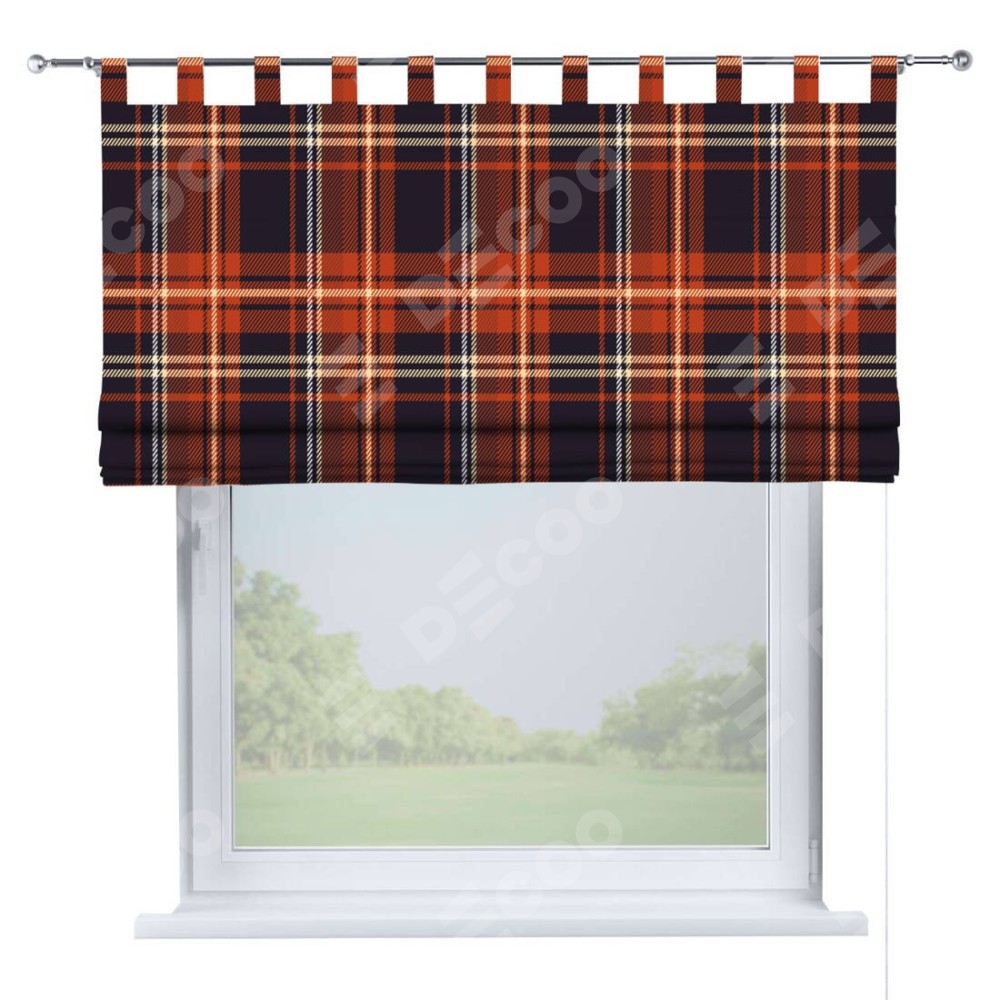 Римская штора производителя «Cortin», используется для проёма, пошита из ткани блэкаут с нанесением сублимационной печати «Сине-оранжевая клетка». Данная модель пошита на петлях, комплектуется на выбор круглым карнизом и подходит для монтажа на стену. Римская штора на петлях имеет простую систему регулировки высоты, отличительным преимуществом данной модели является простой способ монтажа. Достаточно повесить ее на трубу и штора готова!