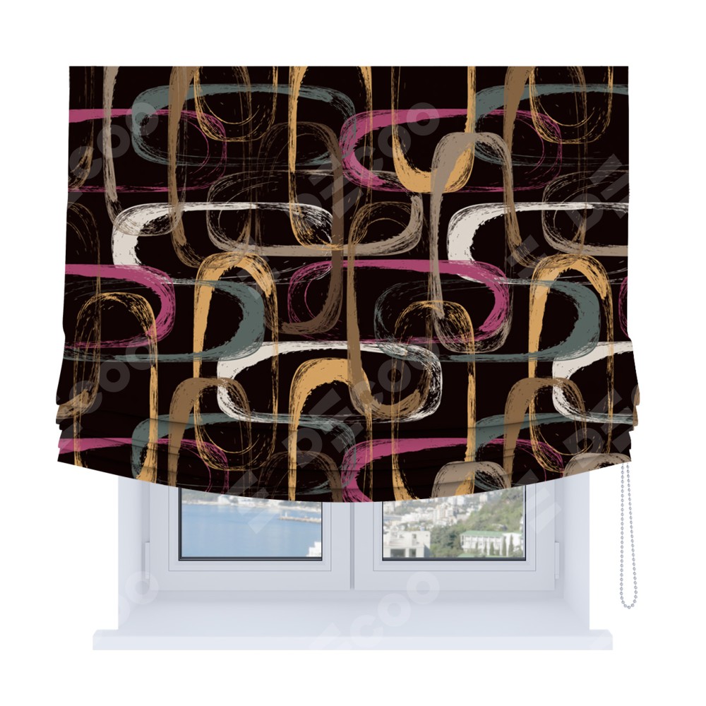 Римская штора Soft производителя «Cortin», используется для проёма, пошита из ткани блэкаут с нанесением сублимационной печати «Тёмная палитра». Имеет универсальный механизм и подходит для монтажа: на потолок, на стену и в нишу. В отличие от стандартных римских штор, римская штора Soft не имеет горизонтальных вставок и нижнего отвеса. Это позволяет ткани произвольно драпироваться в свободные мягкие складки.