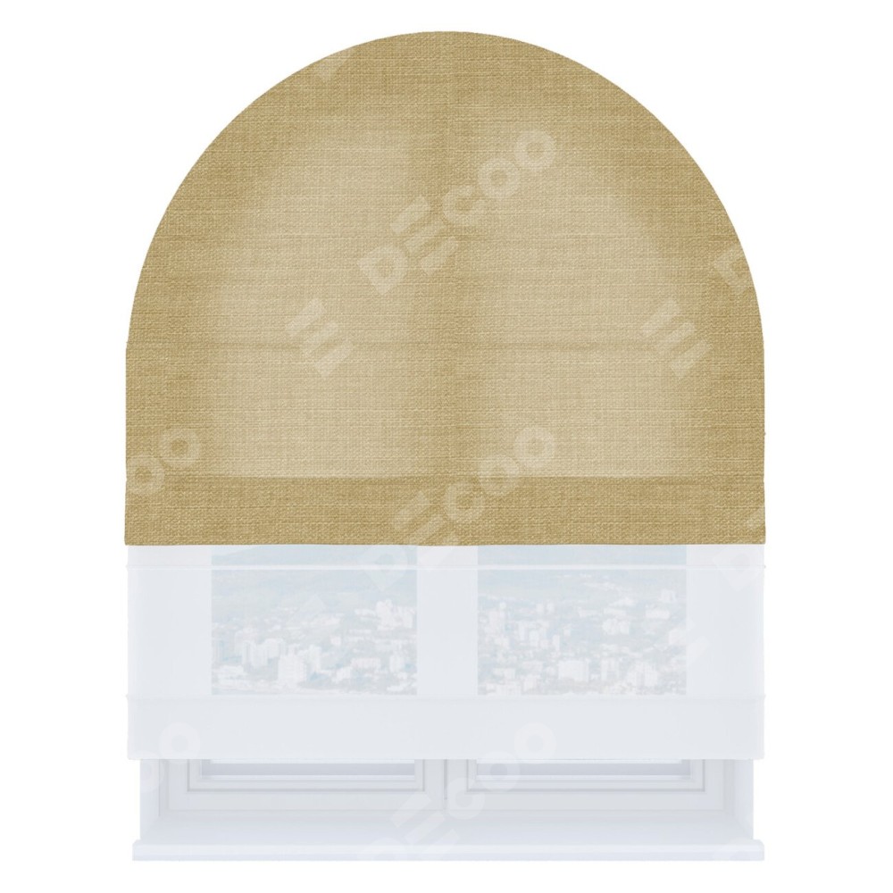 Римская штора день-ночь производителя «Cortin», используется для арочного проёма, пошита из двух полотен, с лицевой стороны лён бежевый артикул 7442, вторая ткань тюль (по стандарту комплектуется тюль белого цвета артикул V-01). Штора шьётся по индивидуальным размерам, для данного типа римской шторы возможная ширина от 60 до 300 см. Удобное управление каждой шторой отдельно.