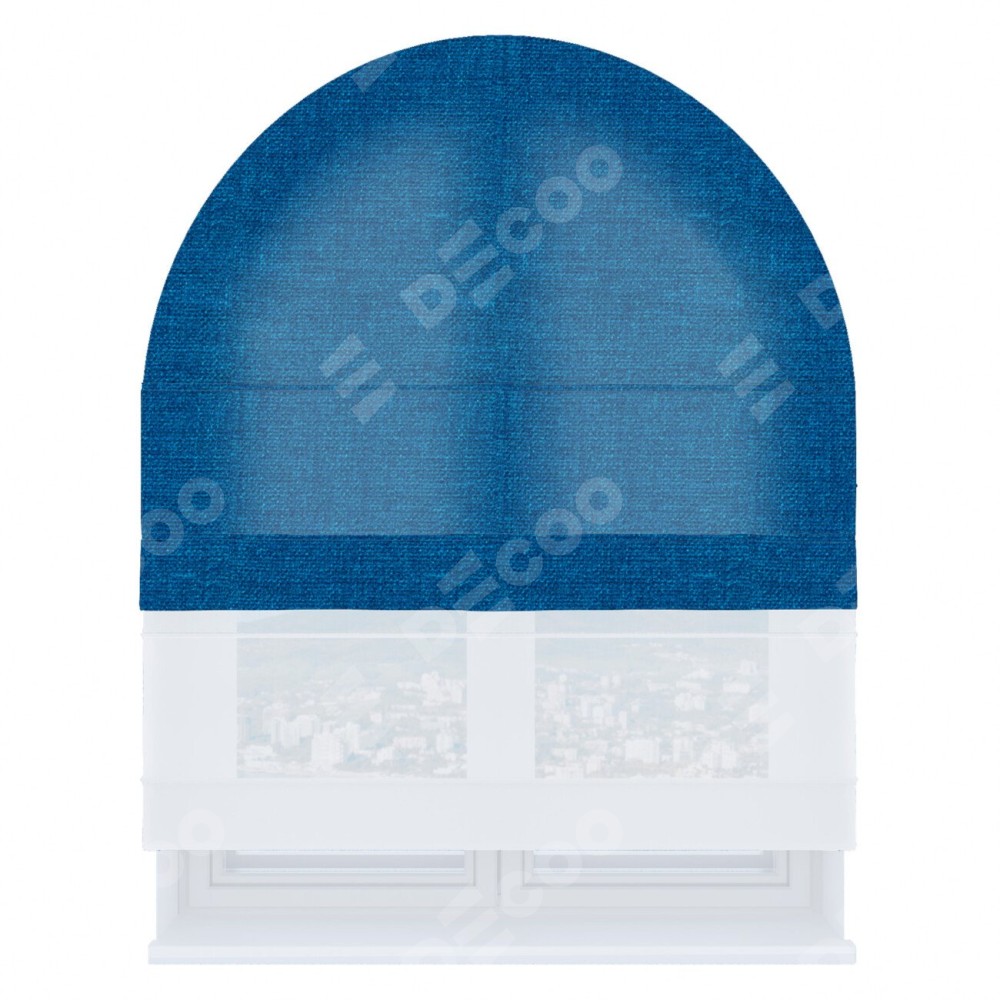 Римская штора «Кортин» день-ночь для арочного проёма, ткань лён синий