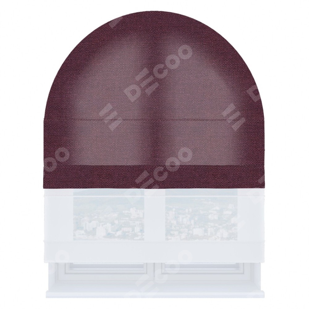 Римская штора день-ночь производителя «Cortin», используется для арочного проёма, пошита из двух полотен, с лицевой стороны лён фиолетовый артикул 85907, вторая ткань тюль (по стандарту комплектуется тюль белого цвета артикул V-01). Штора шьётся по индивидуальным размерам, для данного типа римской шторы возможная ширина от 60 до 300 см. Удобное управление каждой шторой отдельно.