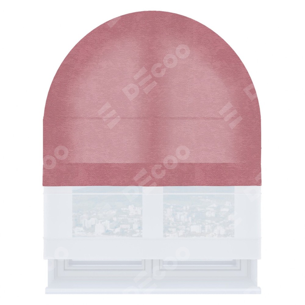 Римская штора день-ночь производителя «Cortin», используется для арочного проёма, пошита из двух полотен, с лицевой стороны софт однотонный розовый артикул 42926, вторая ткань тюль (по стандарту комплектуется тюль белого цвета артикул V-01). Штора шьётся по индивидуальным размерам, для данного типа римской шторы возможная ширина от 60 до 300 см. Удобное управление каждой шторой отдельно.