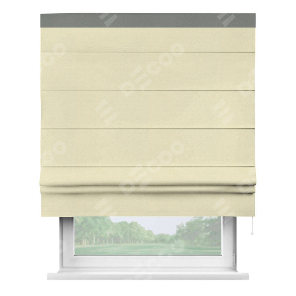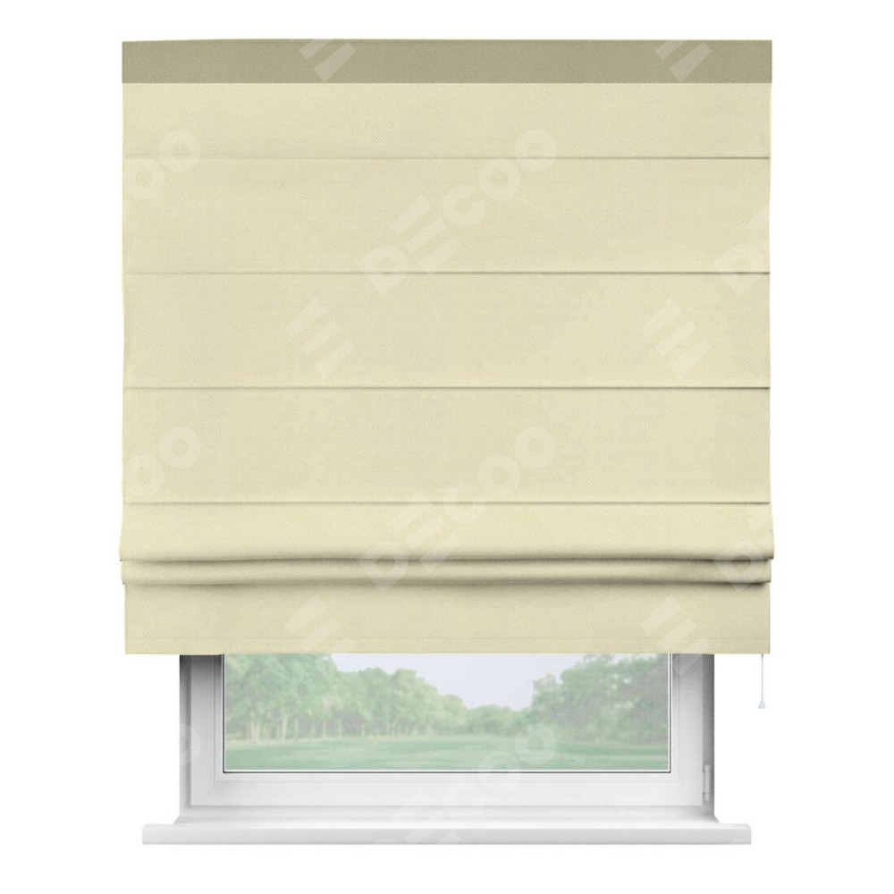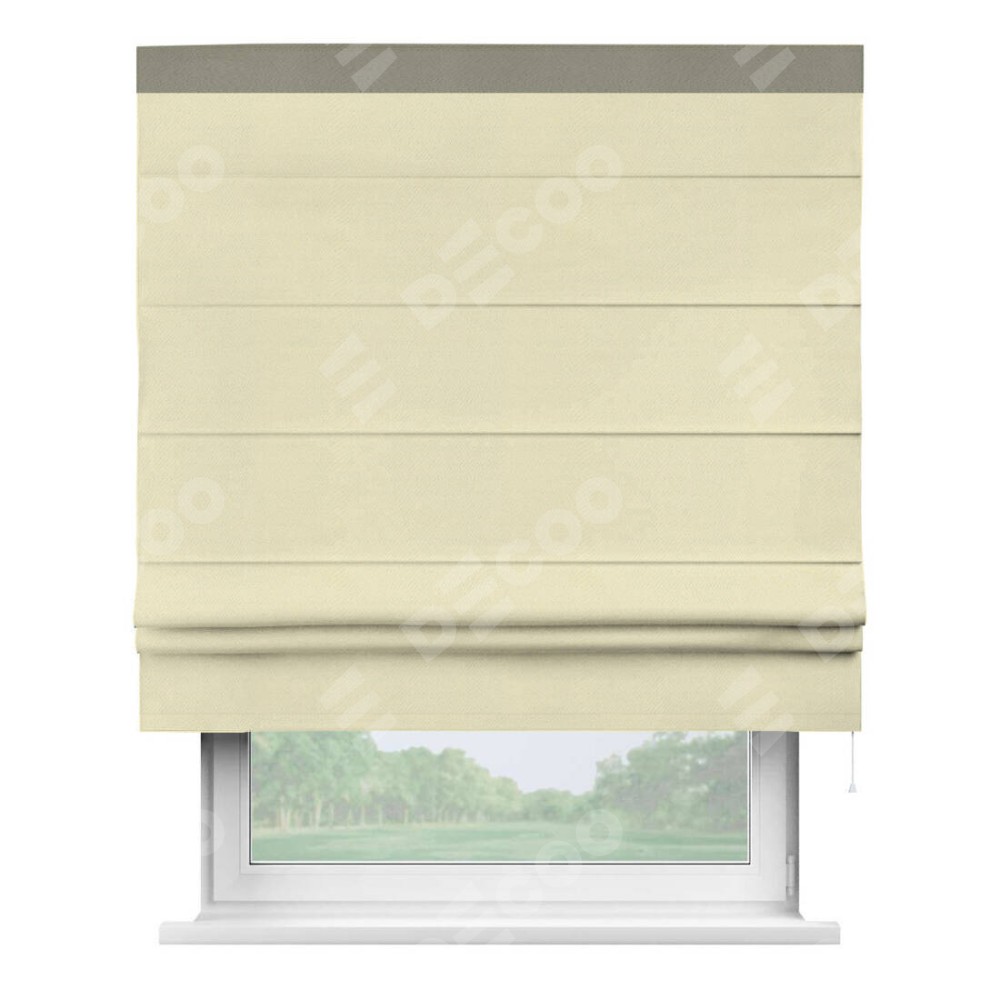 Римская штора производителя «Cortin», используется для проёма, пошита из ткани блэкаут однотонный бежевый, артикул ткани 88283. Отделка шторы кантом «Кинг», ткань для канта используется из блэкаута однотонного разной расцветки на выбор. Имеет универсальный механизм и подходит для монтажа: на потолок, на стену и в нишу.