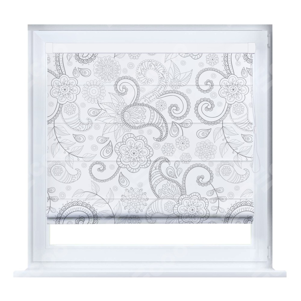 Римская штора производителя «Cortin», устанавливается на створку окна, пошита из ткани блэкаут с нанесением сублимационной печати «Изысканный пейсли». Штора шьётся по индивидуальным размерам, для данного типа римской шторы возможная ширина от 35 до 150 см., высота до 250 см.