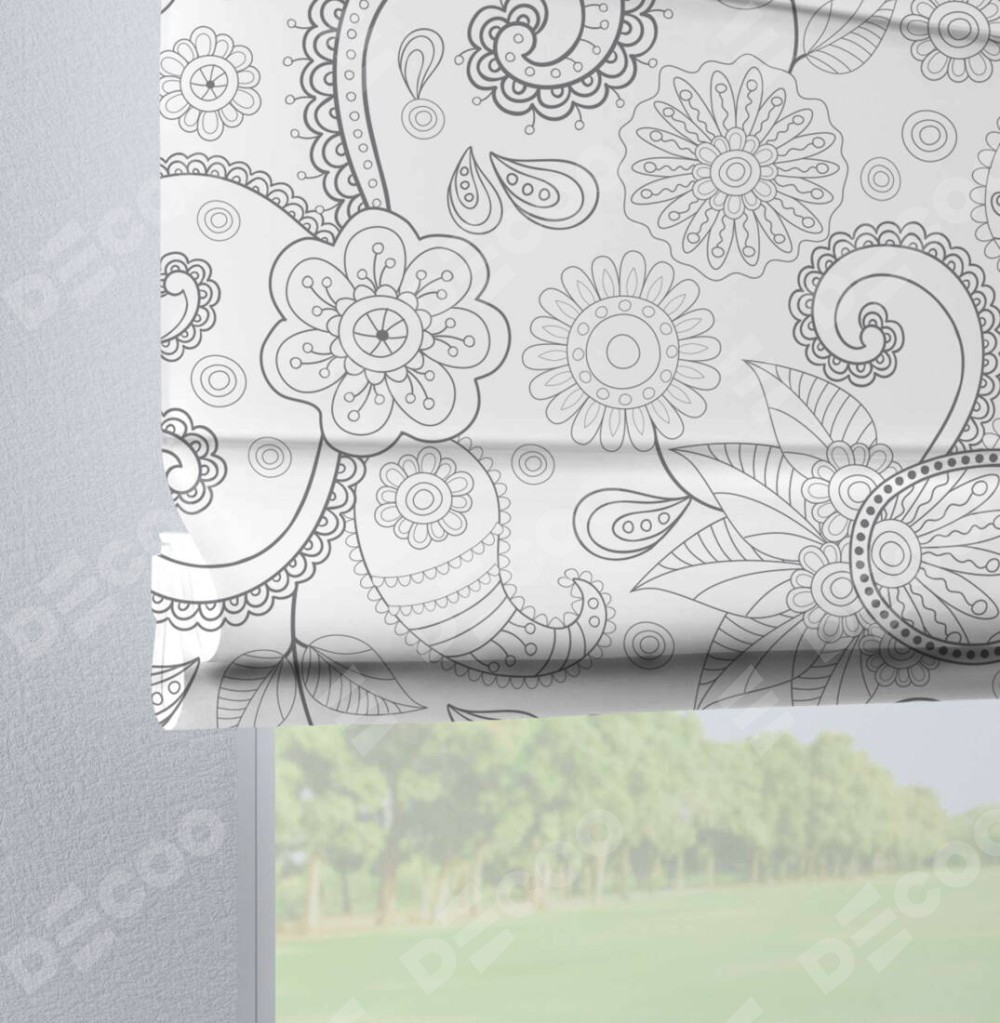 Римская штора производителя «Cortin», используется для проёма, пошита из ткани блэкаут с нанесением сублимационной печати «Изысканный пейсли». Данная модель пошита на петлях, комплектуется на выбор круглым карнизом и подходит для монтажа на стену. Римская штора на петлях имеет простую систему регулировки высоты, отличительным преимуществом данной модели является простой способ монтажа. Достаточно повесить ее на трубу и штора готова!