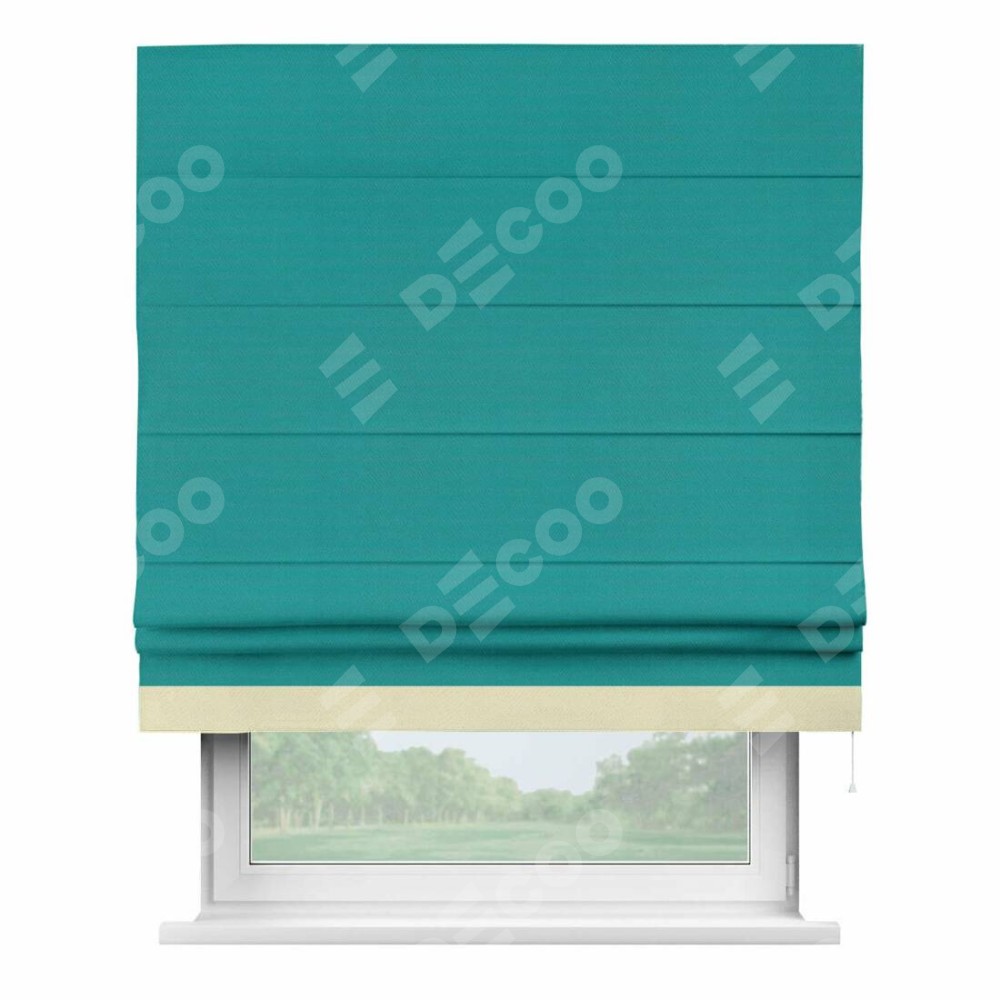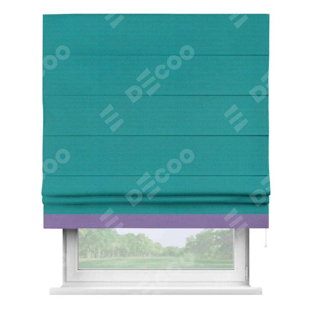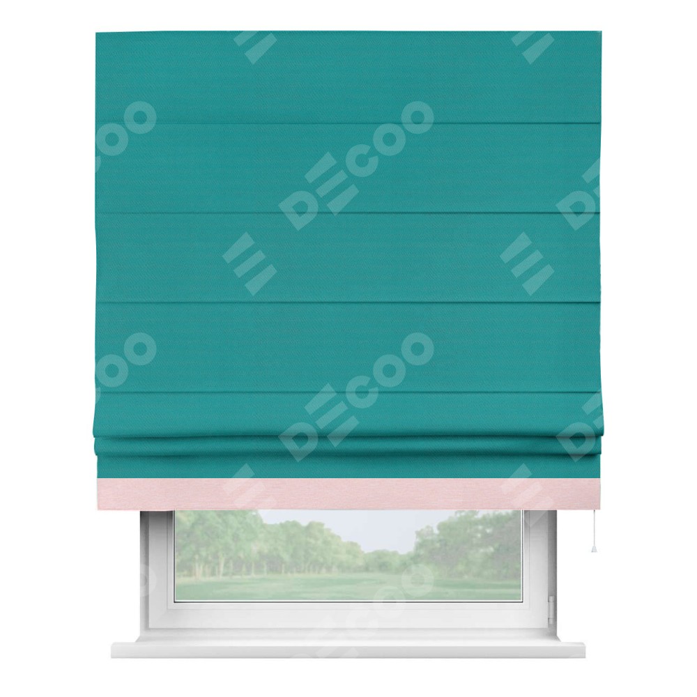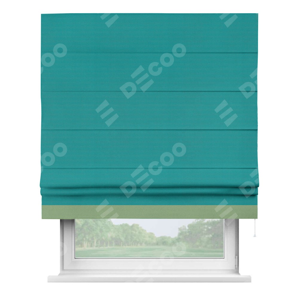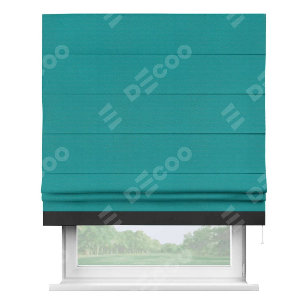 Римская штора «Кортин» с кантом Джестер, для проема, ткань блэкаут однотонный бирюзовый