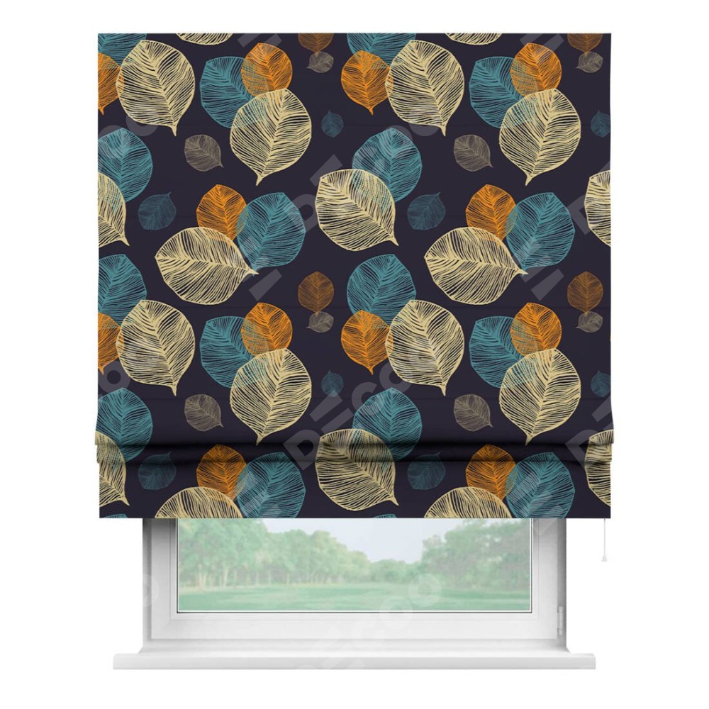 Римская штора «Кортин» для проема «Листья в ночи»