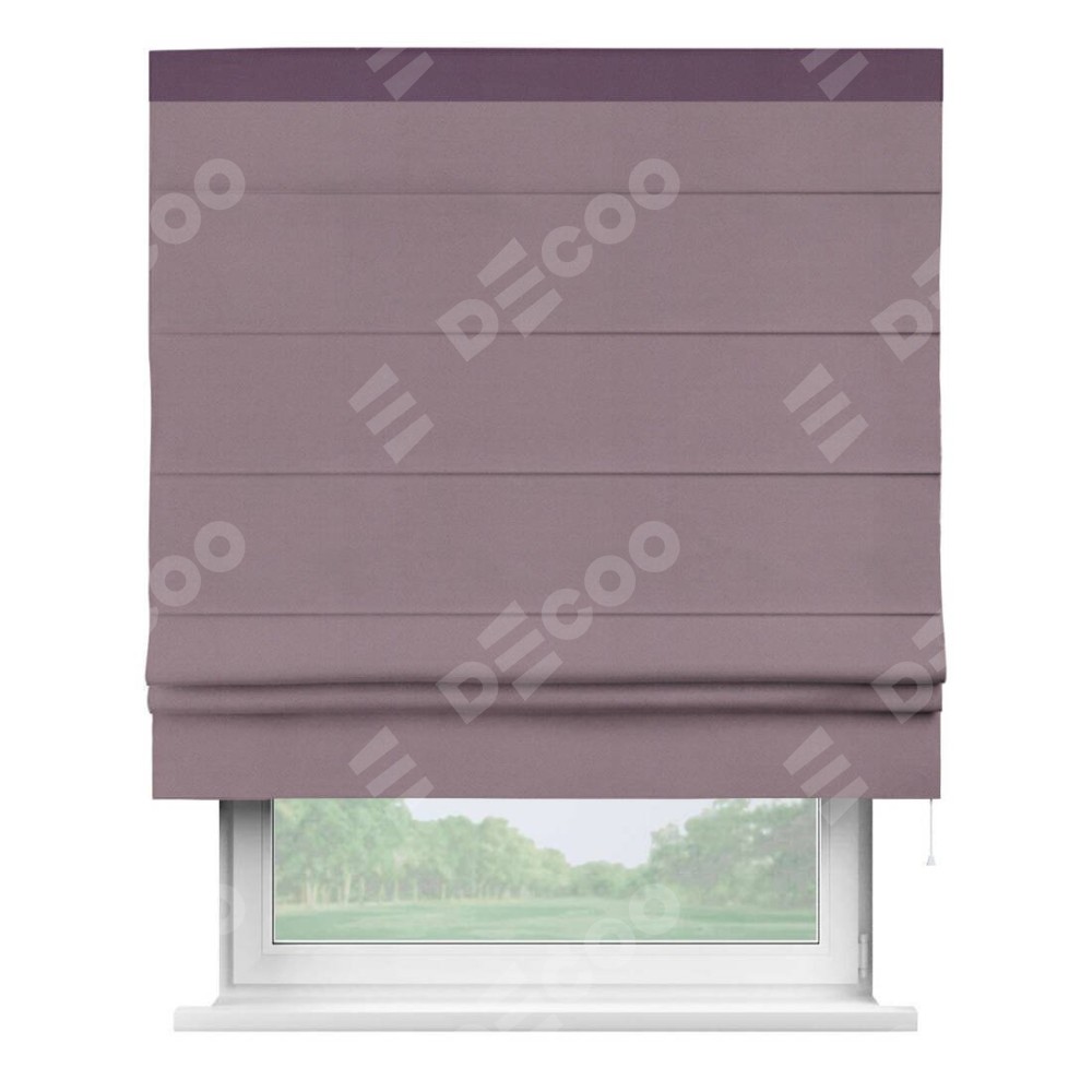 Римская штора производителя «Cortin», используется для проёма, пошита из ткани блэкаут однотонный брусника, артикул ткани 88302. Отделка шторы кантом «Кинг», ткань для канта используется из блэкаута однотонного разной расцветки на выбор. Имеет универсальный механизм и подходит для монтажа: на потолок, на стену и в нишу.
