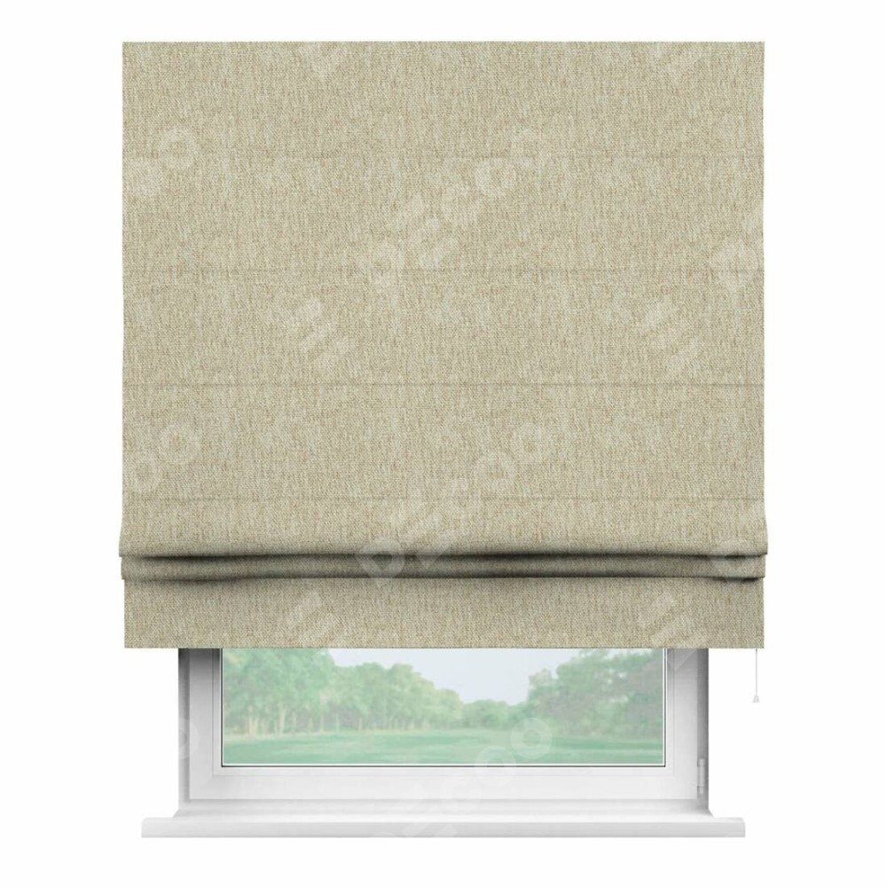 Римская штора производителя «Cortin», используется для проёма, пошита из ткани стиф димаут светло-бежевый, артикул ткани 18084. Имеет универсальный механизм и подходит для монтажа: на потолок, на стену и в нишу.