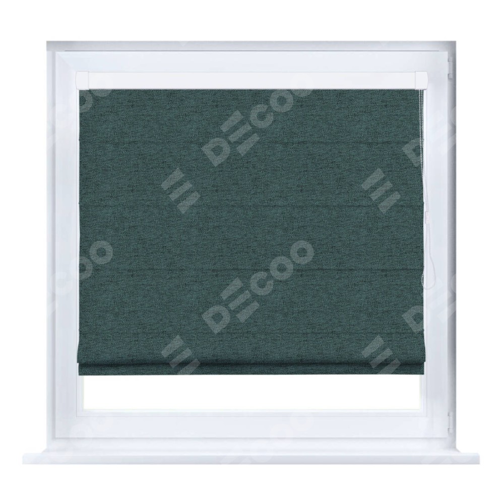 Римская штора производителя «Cortin», устанавливается на створку окна, пошита из ткани стиф димаут сине-зелёный, артикул 18194. Штора шьётся по индивидуальным размерам, для данного типа римской шторы возможная ширина от 35 до 150 см., высота до 250 см.