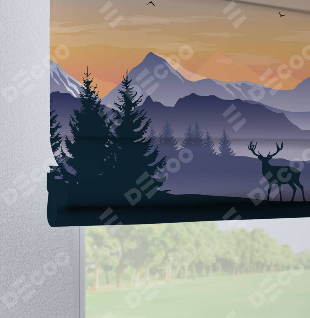 Римская штора производителя «Cortin», используется для проёма, пошита из ткани блэкаут с нанесением сублимационной печати «Закат в горах». Данная модель пошита на петлях, комплектуется на выбор круглым карнизом и подходит для монтажа на стену. Римская штора на петлях имеет простую систему регулировки высоты, отличительным преимуществом данной модели является простой способ монтажа. Достаточно повесить ее на трубу и штора готова!