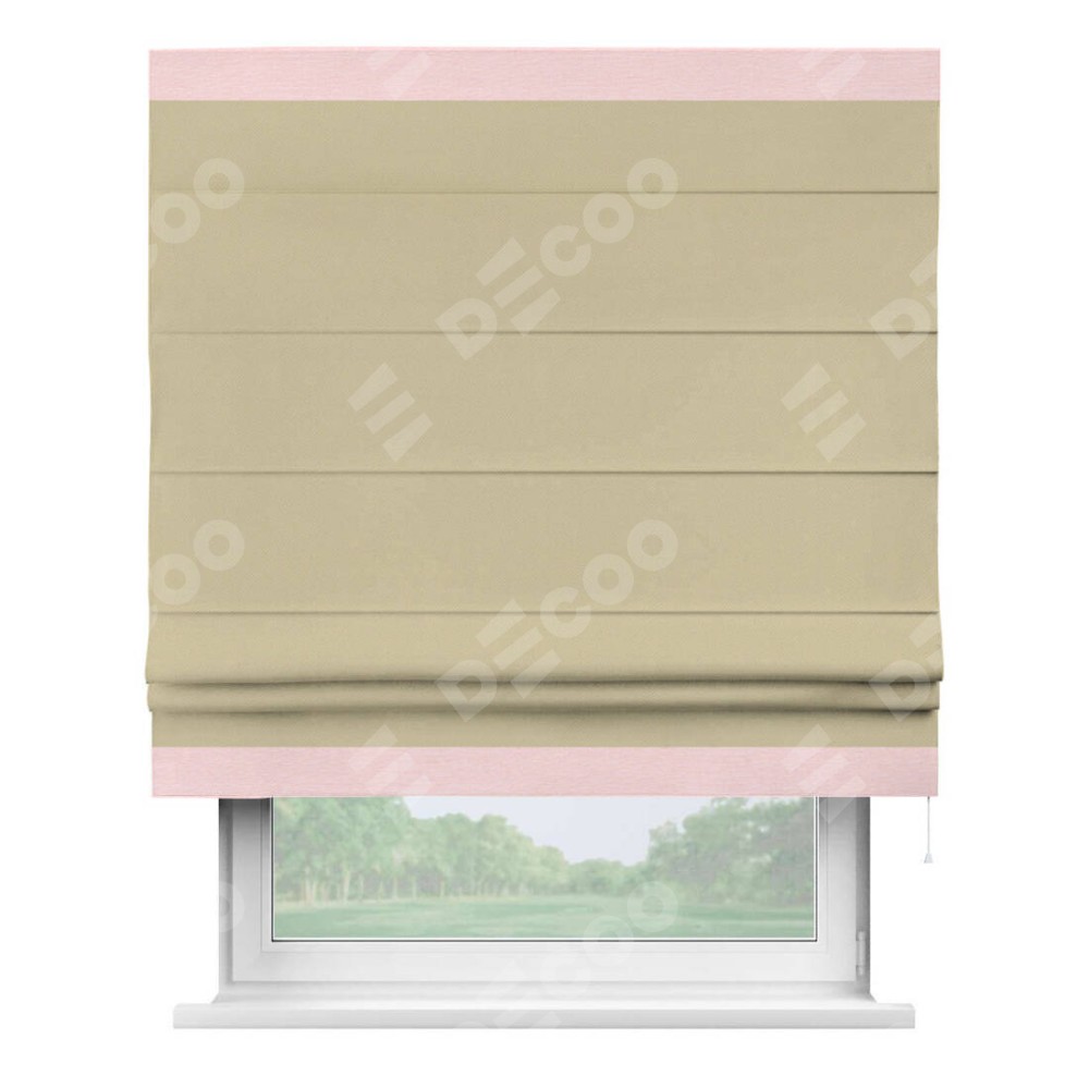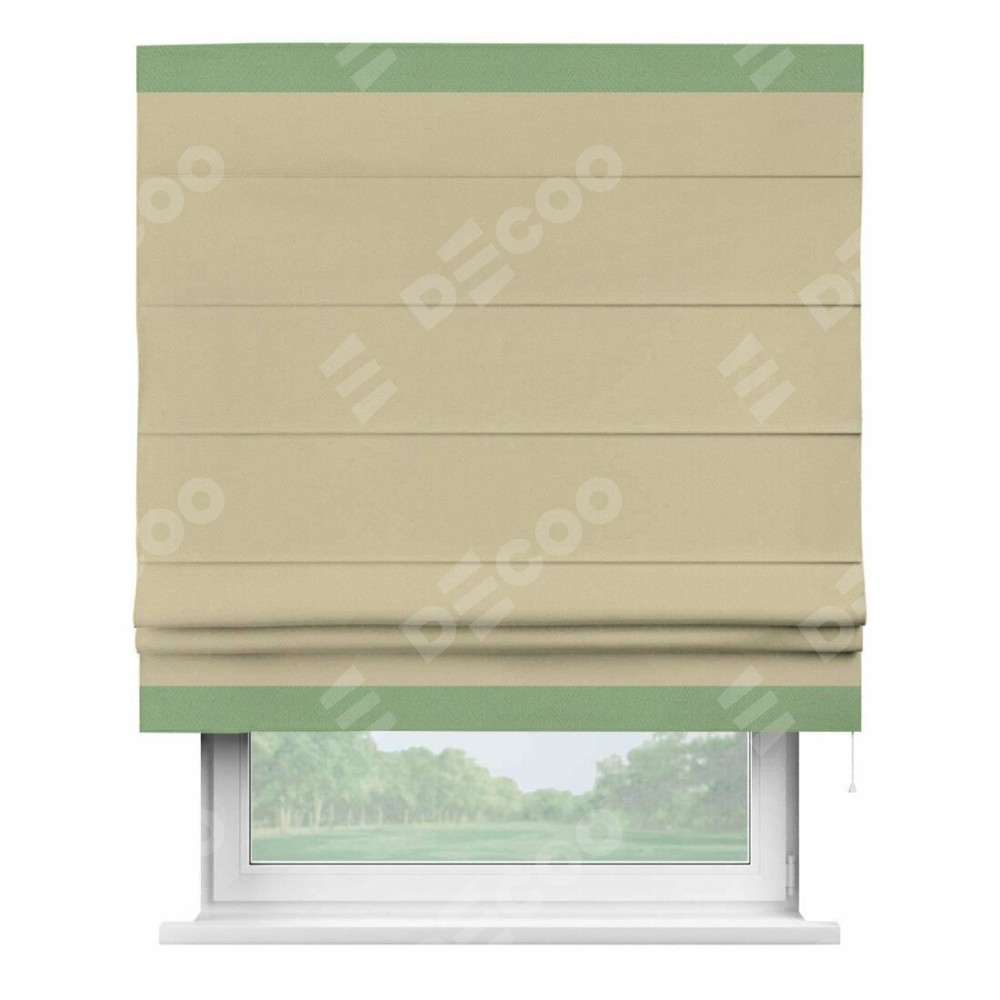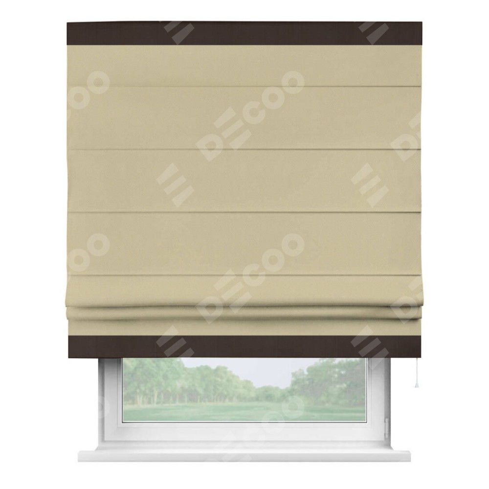 Римская штора производителя «Cortin», используется для проёма, пошита из ткани блэкаут однотонный кофейный, артикул ткани 13130. Отделка шторы кантом «Горизонт», ткань для канта используется из блэкаута однотонного разной расцветки на выбор. Имеет универсальный механизм и подходит для монтажа: на потолок, на стену и в нишу.
