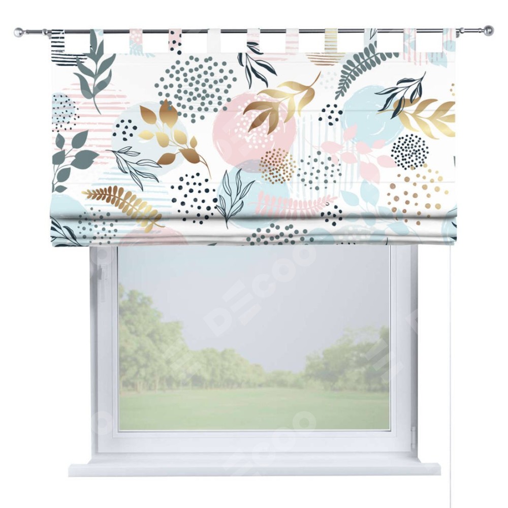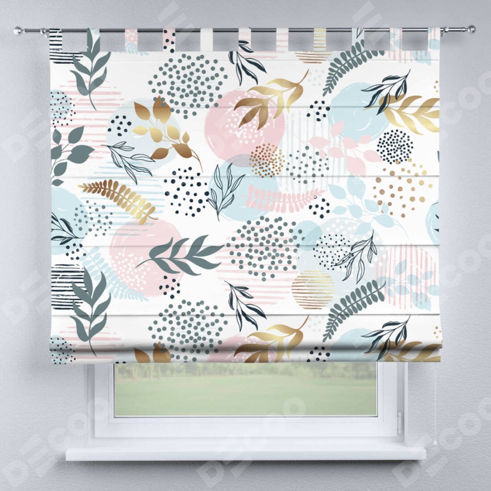 Римская штора производителя «Cortin», используется для проёма, пошита из ткани блэкаут с нанесением сублимационной печати «Точки и листочки». Данная модель пошита на петлях, комплектуется на выбор круглым карнизом и подходит для монтажа на стену. Римская штора на петлях имеет простую систему регулировки высоты, отличительным преимуществом данной модели является простой способ монтажа. Достаточно повесить ее на трубу и штора готова!