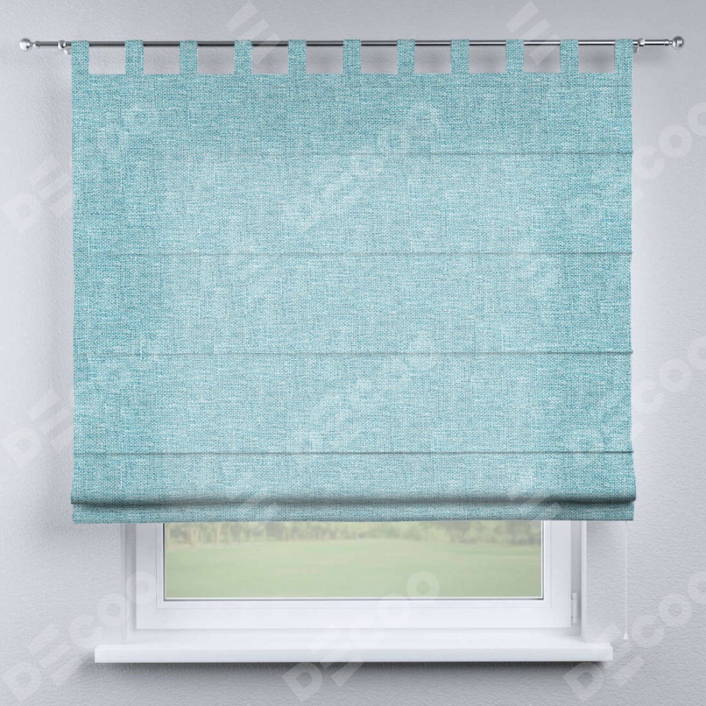 Римская штора производителя «Cortin», используется для проёма, пошита из ткани лён кашемир голубой, артикул ткани 21616. Данная модель пошита на петлях, комплектуется на выбор круглым карнизом и подходит для монтажа на стену. Римская штора на петлях имеет простую систему регулировки высоты, отличительным преимуществом данной модели является простой способ монтажа. Достаточно повесить ее на трубу и штора готова!