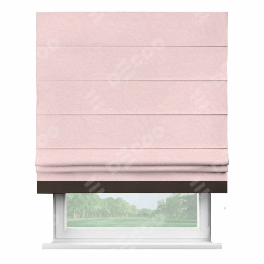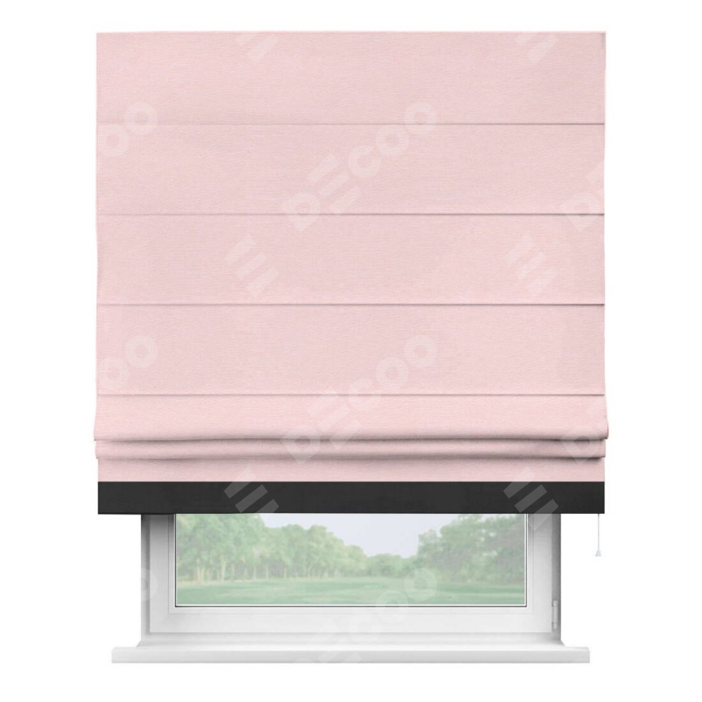 Римская штора производителя «Cortin», используется для проёма, пошита из ткани блэкаут однотонный розовый, артикул ткани 83046. Отделка шторы кантом «Джестер», ткань для канта используется из блэкаута однотонного разной расцветки на выбор. Имеет универсальный механизм и подходит для монтажа: на потолок, на стену и в нишу.