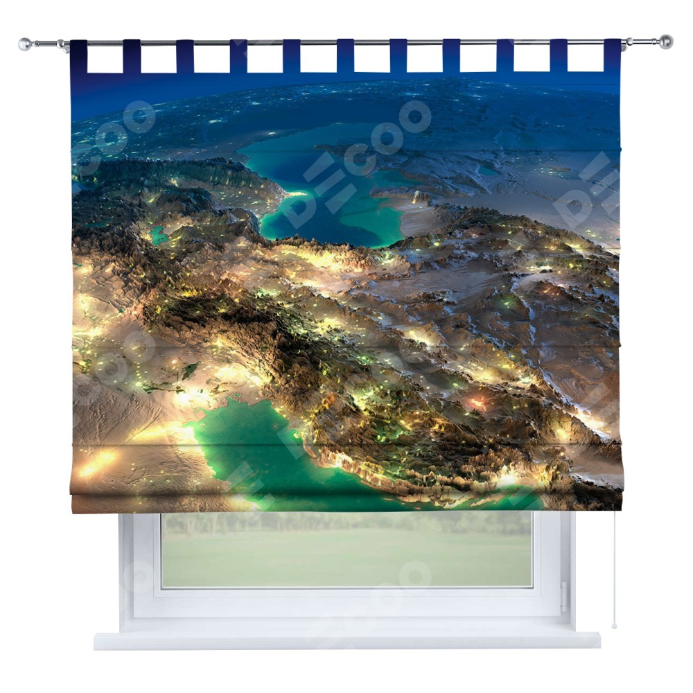 Римская штора производителя «Cortin», используется для проёма, пошита из ткани блэкаут с нанесением сублимационной печати «Ночные огни». Данная модель пошита на петлях, комплектуется на выбор круглым карнизом и подходит для монтажа на стену. Римская штора на петлях имеет простую систему регулировки высоты, отличительным преимуществом данной модели является простой способ монтажа. Достаточно повесить ее на трубу и штора готова!