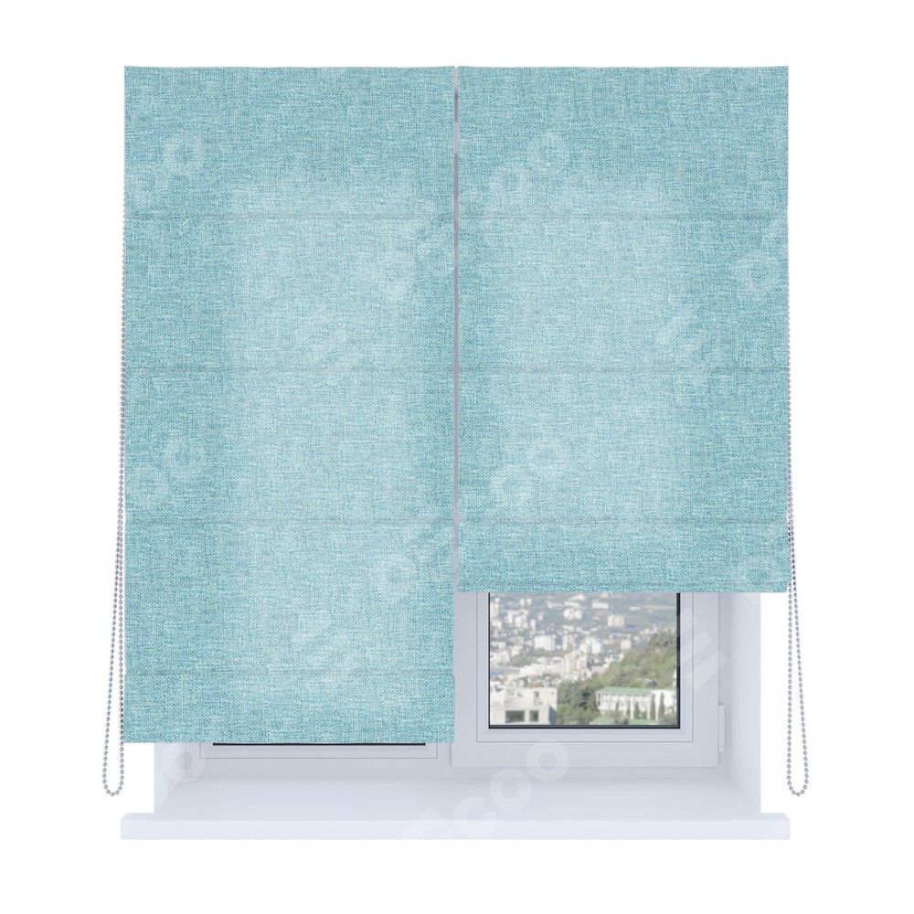 Римская штора производителя «Cortin», используется для проёма, пошита из ткани лён кашемир голубой, артикул ткани 21616. Имеет универсальный механизм и подходит для монтажа: на потолок, на стену и в нишу. Удобное управление каждой шторой отдельно.