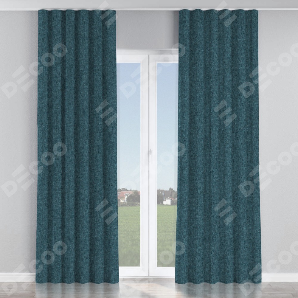 Комплект прямых штор, от производителя «Cortin», пошиты из ткани лён кашемир синий, артикул ткани 21623. С изнаночной стороны в верхней части штор пристрачивается шторная лента с декоративными складками «Волна». Для создания элегантных складок прямые шторы шьются по стандарту с коэффициентом 1:2 (на 100 см. ширины проёма 200 см. ширины ткани).