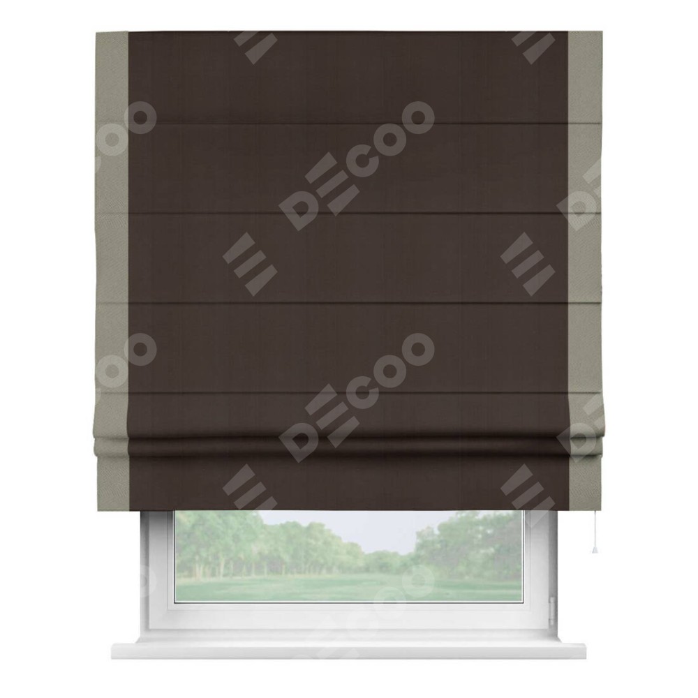 Римская штора «Кортин» с кантом Стрим Дуо, для проема, ткань блэкаут однотонный тёмно-коричневый