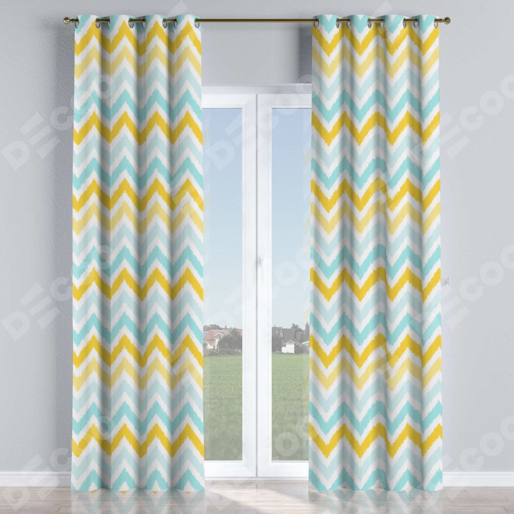Комплект прямых штор, от производителя «Cortin», пошиты из ткани блэкаут с нанесением сублимационной печати «Икат шеврон». Данная модель пошита на люверсах, комплектуется на выбор круглым карнизом и подходит для монтажа на стену или потолок. Прямые шторы на люверсах шьются по стандарту с коэффициентом 1/2 (на 100 см. ширины проёма 200 см. ширины ткани), отличительным преимуществом данной модели является простой способ монтажа. Достаточно повесить ее на трубу и штора готова!