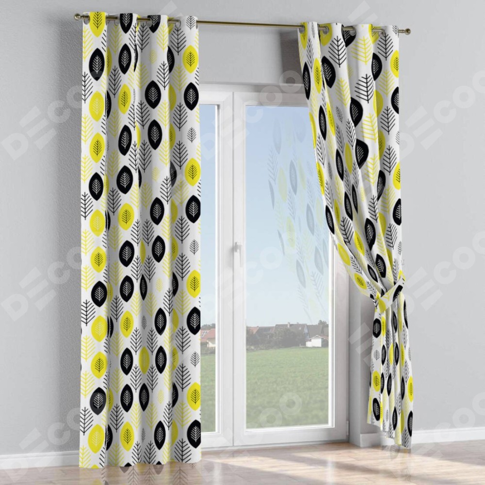 Комплект прямых штор, от производителя «Cortin», пошиты из ткани блэкаут с нанесением сублимационной печати «Черно-желтый модерн». Данная модель пошита на люверсах, комплектуется на выбор круглым карнизом и подходит для монтажа на стену или потолок. Прямые шторы на люверсах шьются по стандарту с коэффициентом 1/2 (на 100 см. ширины проёма 200 см. ширины ткани), отличительным преимуществом данной модели является простой способ монтажа. Достаточно повесить ее на трубу и штора готова!