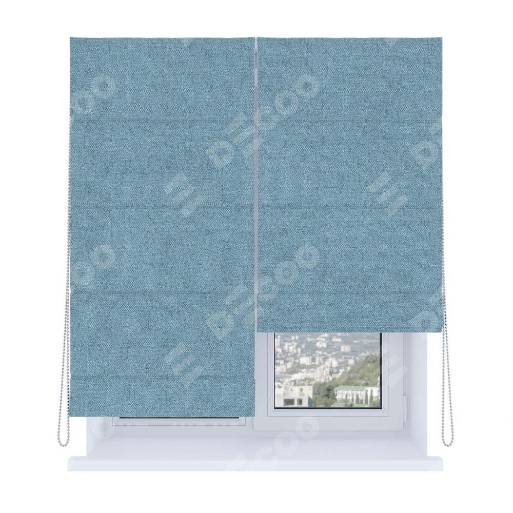Римская штора производителя «Cortin», используется для проёма, пошита из ткани лён блэкаут голубой, артикул ткани 69574. Имеет универсальный механизм и подходит для монтажа: на потолок, на стену и в нишу. Удобное управление каждой шторой отдельно.
