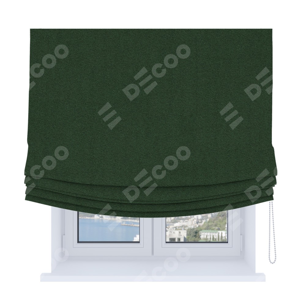 Римская штора Soft производителя «Cortin», используется для проёма, пошита из ткани лён блэкаут зелёный, артикул ткани 69497. Имеет универсальный механизм и подходит для монтажа: на потолок, на стену и в нишу. В отличие от стандартных римских штор, римская штора Soft не имеет горизонтальных вставок и нижнего отвеса. Это позволяет ткани произвольно драпироваться в свободные мягкие складки.