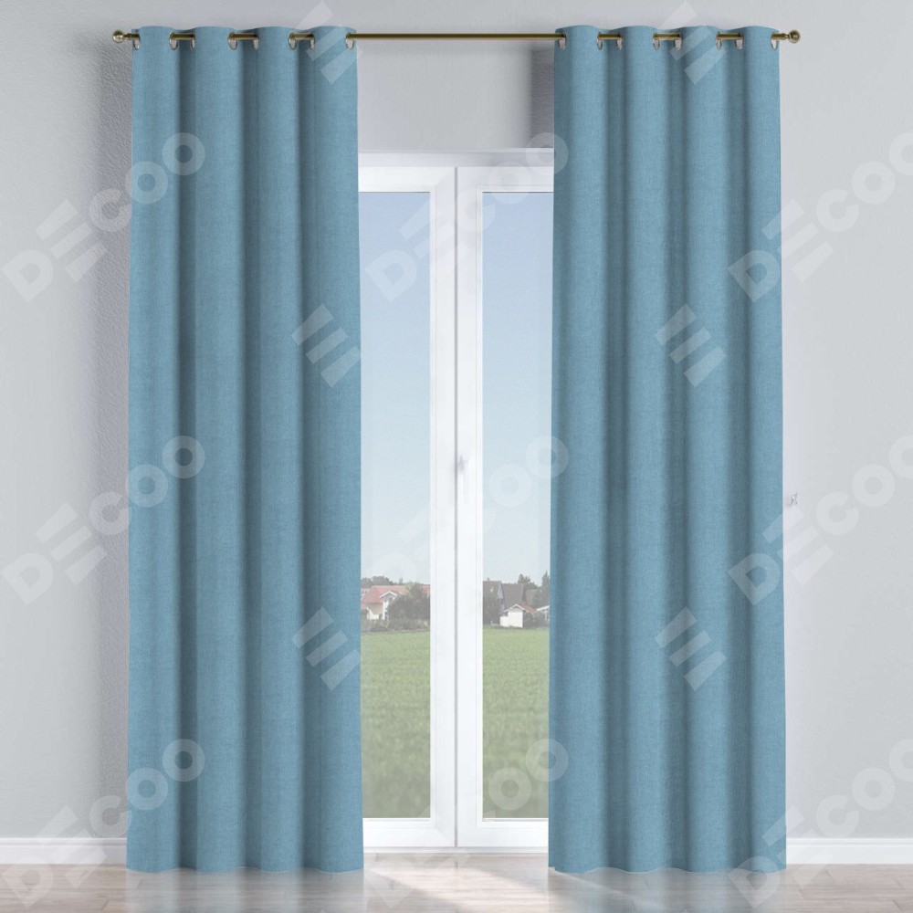 Комплект прямых штор, от производителя «Cortin», пошиты из ткани лён блэкаут голубой, артикул ткани 69574. Данная модель пошита на люверсах, комплектуется на выбор круглым карнизом и подходит для монтажа на стену или потолок. Прямые шторы на люверсах шьются по стандарту с коэффициентом 1/2 (на 100 см. ширины проёма 200 см. ширины ткани), отличительным преимуществом данной модели является простой способ монтажа. Достаточно повесить ее на трубу и штора готова!