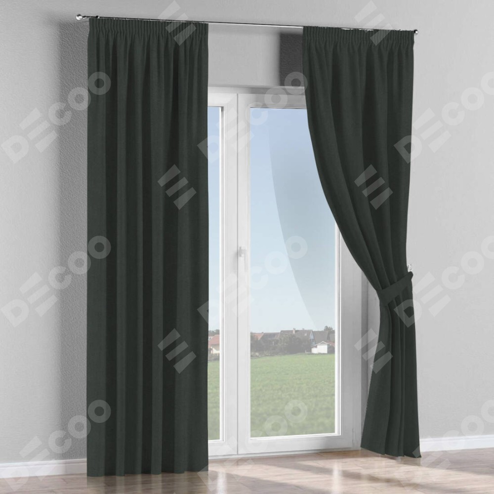 Комплект прямых штор, от производителя «Cortin», пошиты из ткани лён блэкаут графит, артикул ткани 69448. С изнаночной стороны в верхней части штор пристрачивается шторная лента с декоративными складками «Карандаш». Для создания элегантных складок прямые шторы шьются по стандарту с коэффициентом 1:2 (на 100 см. ширины проёма 200 см. ширины ткани).