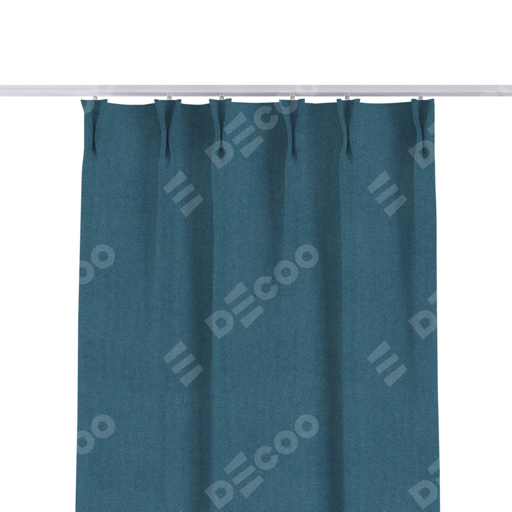 Комплект прямых штор, от производителя «Cortin», пошиты из ткани лён блэкаут синий, артикул ткани 69528. С изнаночной стороны в верхней части штор пристрачивается шторная лента с декоративными складками «Кустик». Для создания элегантных складок прямые шторы шьются по стандарту с коэффициентом 1:2 (на 100 см. ширины проёма 200 см. ширины ткани).