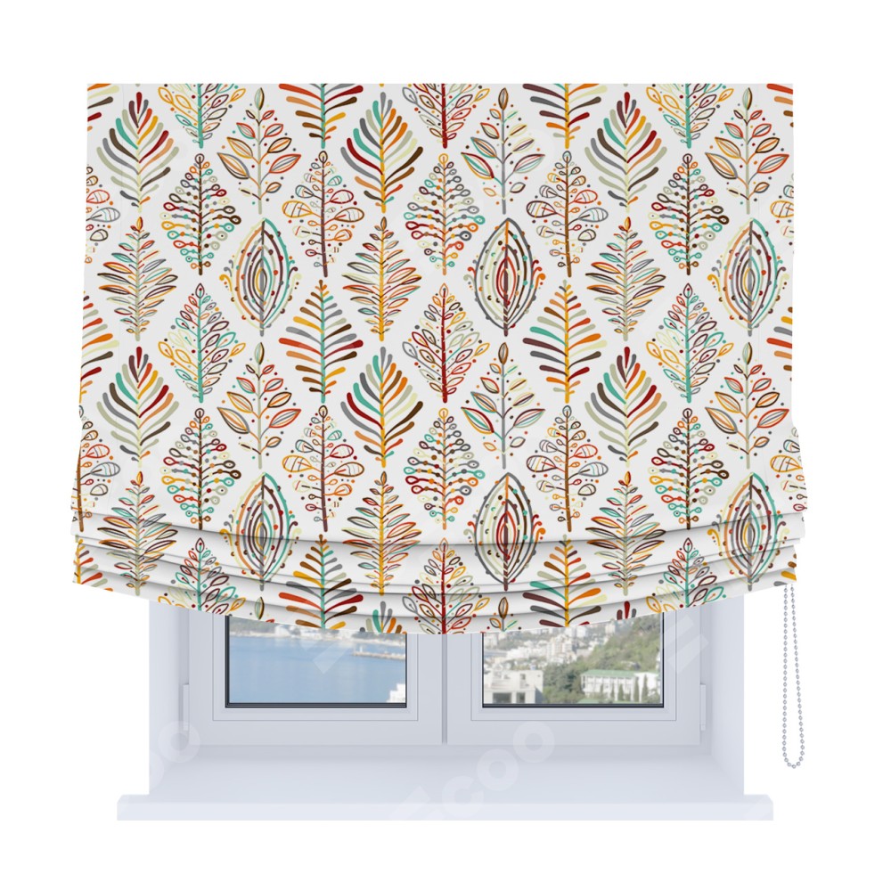 Римская штора Soft производителя «Cortin», используется для проёма, пошита из ткани блэкаут с нанесением сублимационной печати «Растительные ромбы». Имеет универсальный механизм и подходит для монтажа: на потолок, на стену и в нишу. В отличие от стандартных римских штор, римская штора Soft не имеет горизонтальных вставок и нижнего отвеса. Это позволяет ткани произвольно драпироваться в свободные мягкие складки.