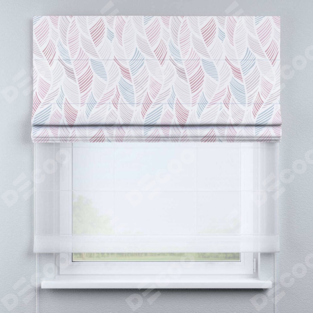 Римская штора день-ночь производителя «Cortin», используется для проёма, пошита из двух полотен, с лицевой блэкаут с нанесением сублимационной печати «Релакс», вторая ткань тюль (по стандарту комплектуется тюль белого цвета артикул V-01). Имеет универсальный механизм и подходит для монтажа: на потолок, на стену и в нишу.