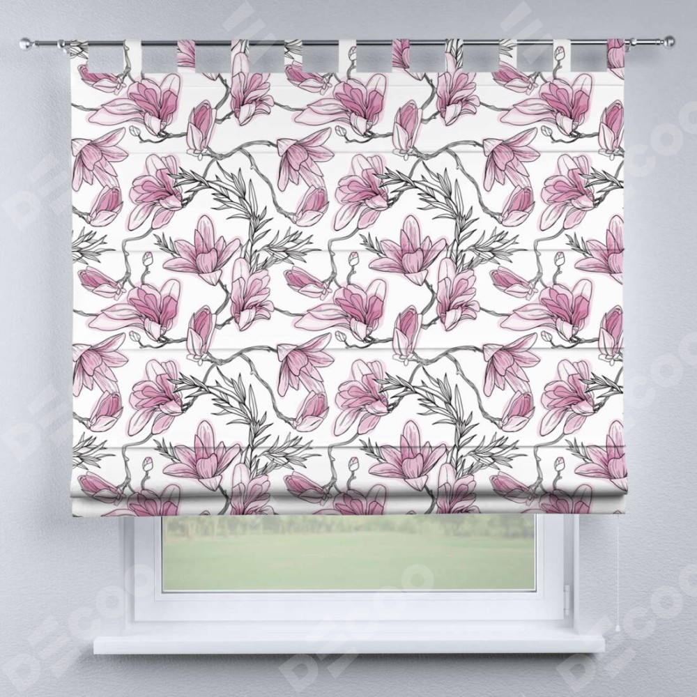 Римская штора производителя «Cortin», используется для проёма, пошита из ткани блэкаут с нанесением сублимационной печати «Цветки магнолии». Данная модель пошита на петлях, комплектуется на выбор круглым карнизом и подходит для монтажа на стену. Римская штора на петлях имеет простую систему регулировки высоты, отличительным преимуществом данной модели является простой способ монтажа. Достаточно повесить ее на трубу и штора готова!